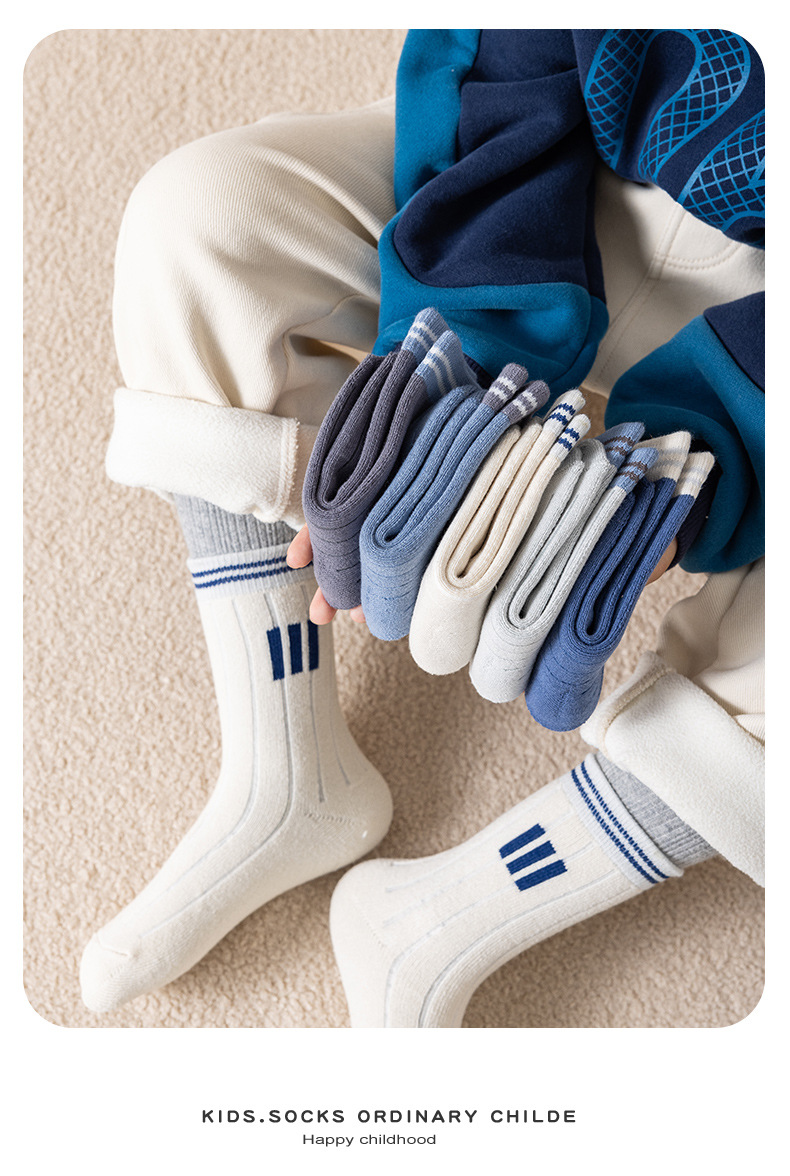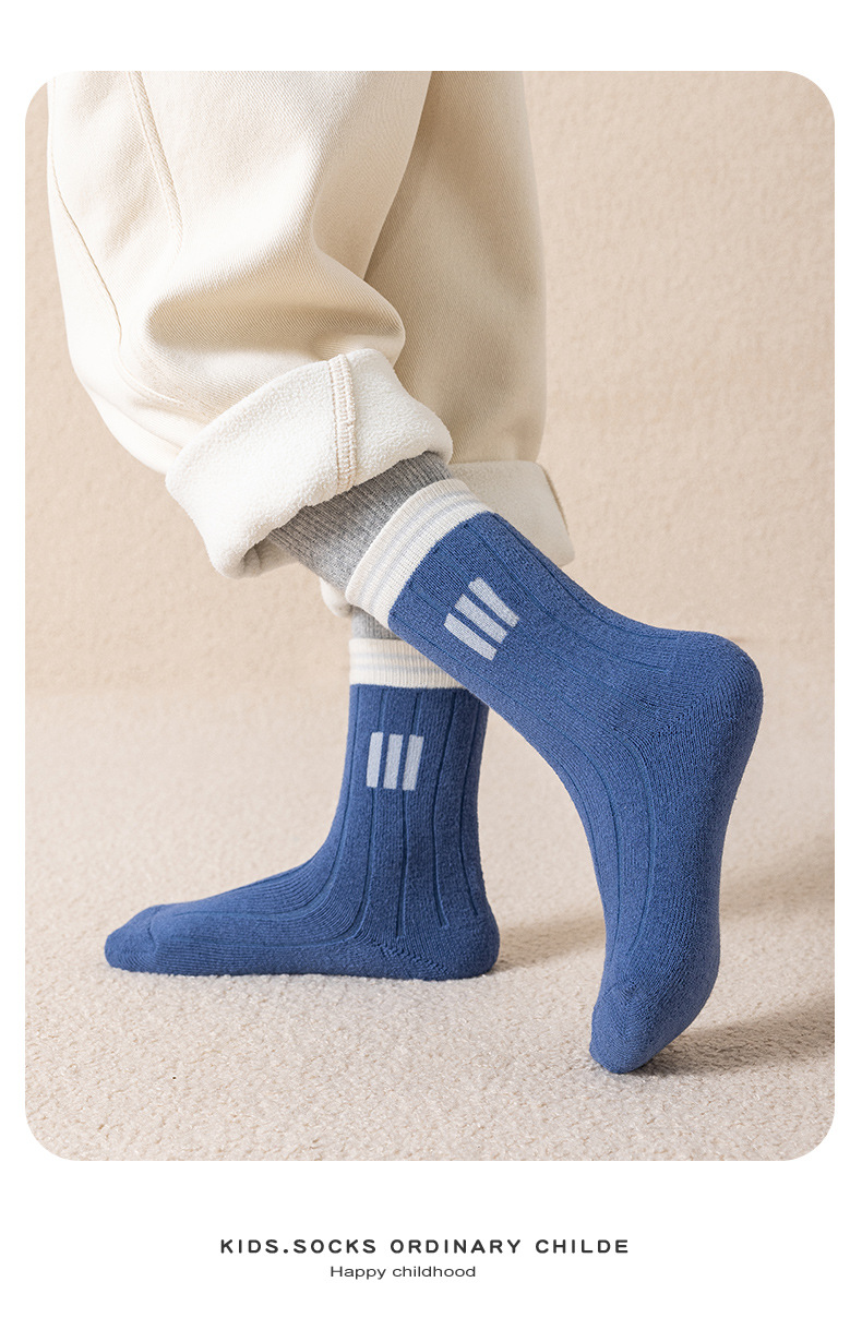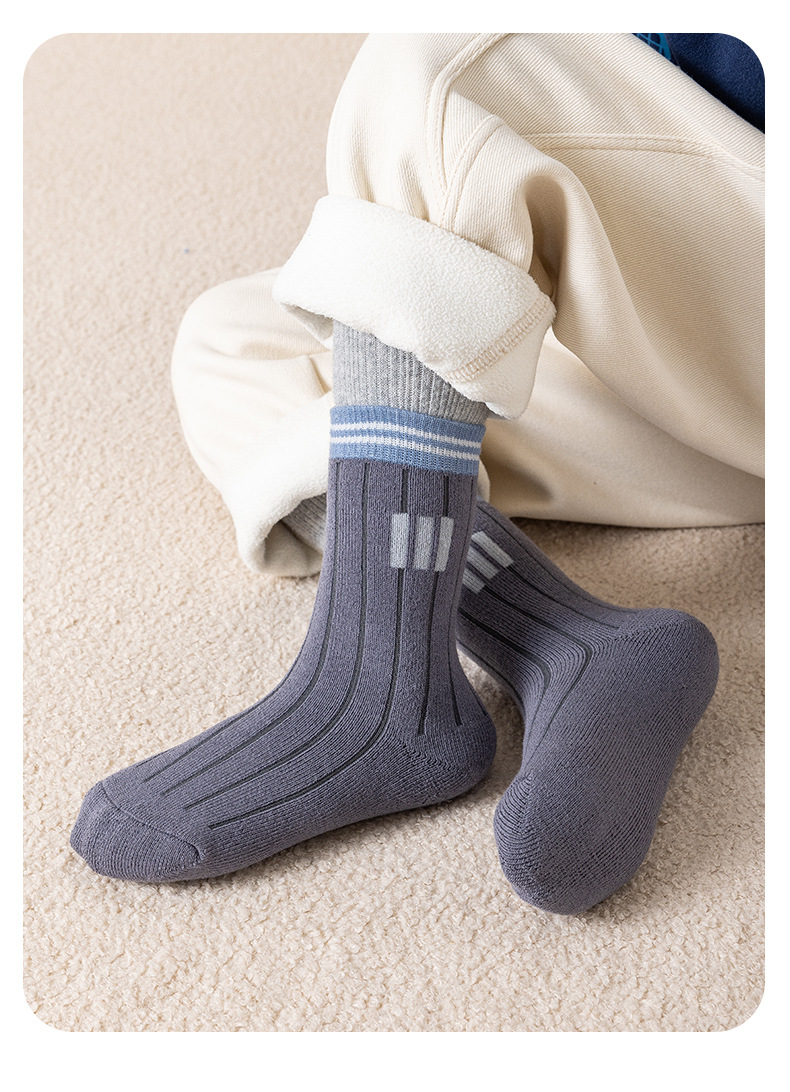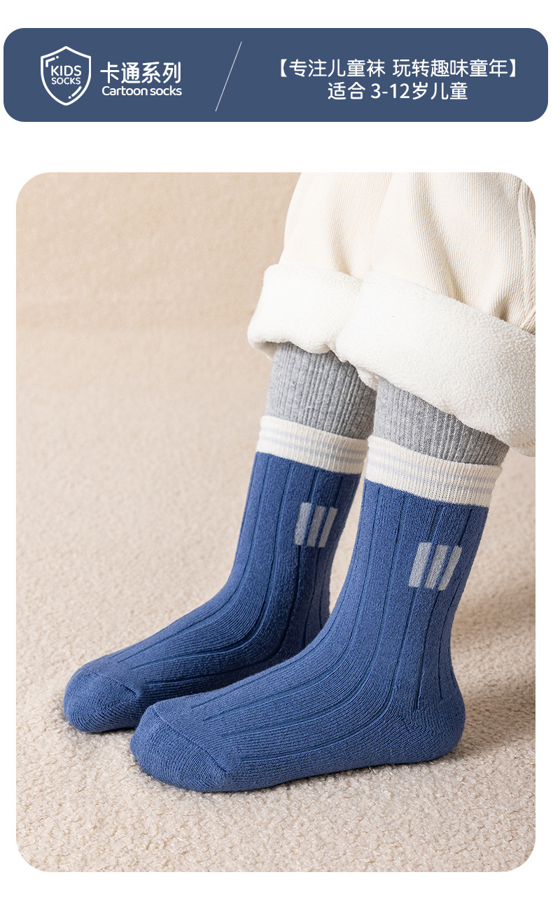 어린이 가을과 겨울 두꺼운 따뜻한 테리 양말 Luo Kou 스트라이프 어린이 양말 땀 흡수성 통기성 기모 따뜻한 내마모성 튜브 양말