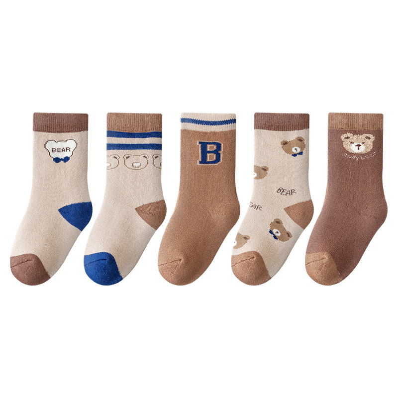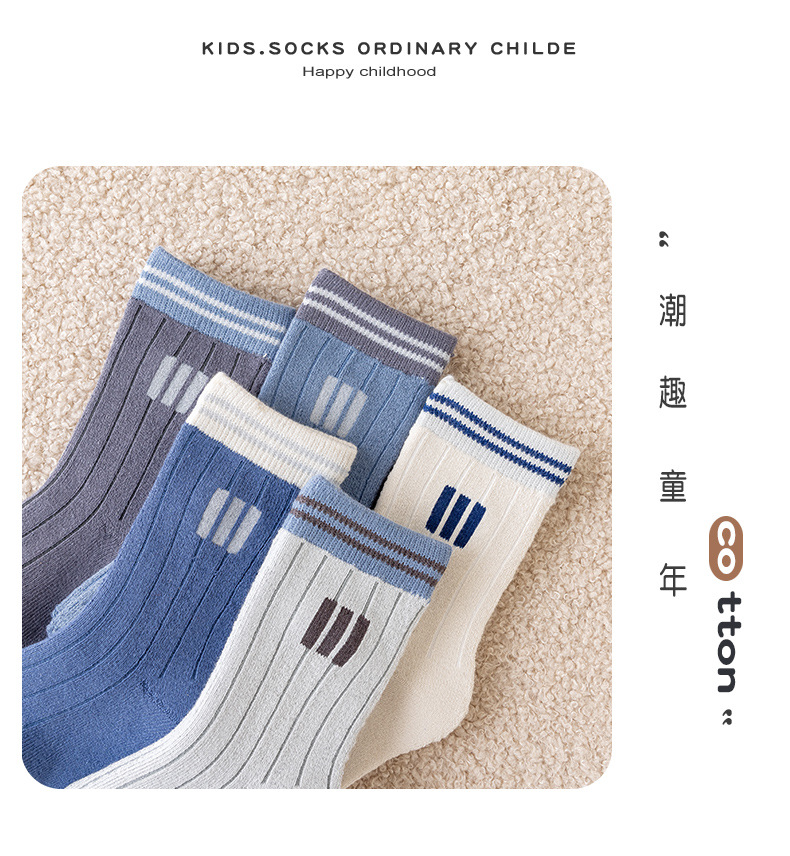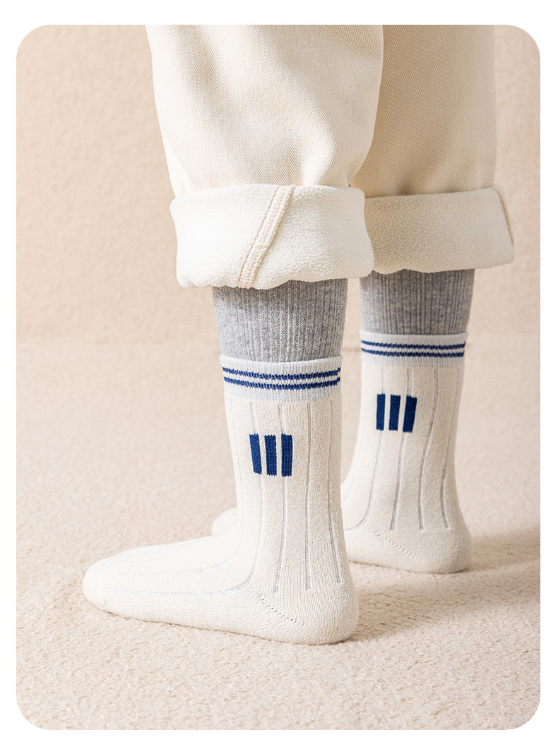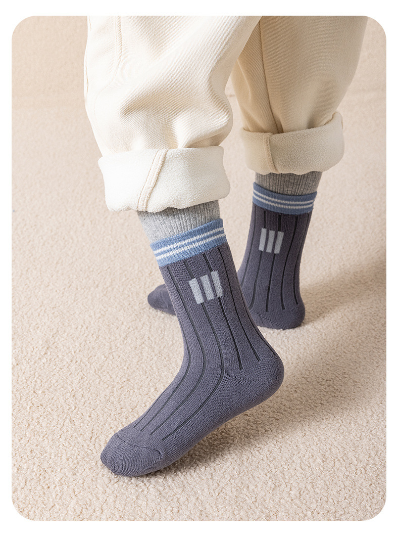 어린이 가을과 겨울 두꺼운 따뜻한 테리 양말 Luo Kou 스트라이프 어린이 양말 땀 흡수성 통기성 기모 따뜻한 내마모성 튜브 양말