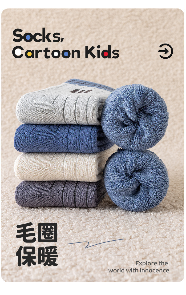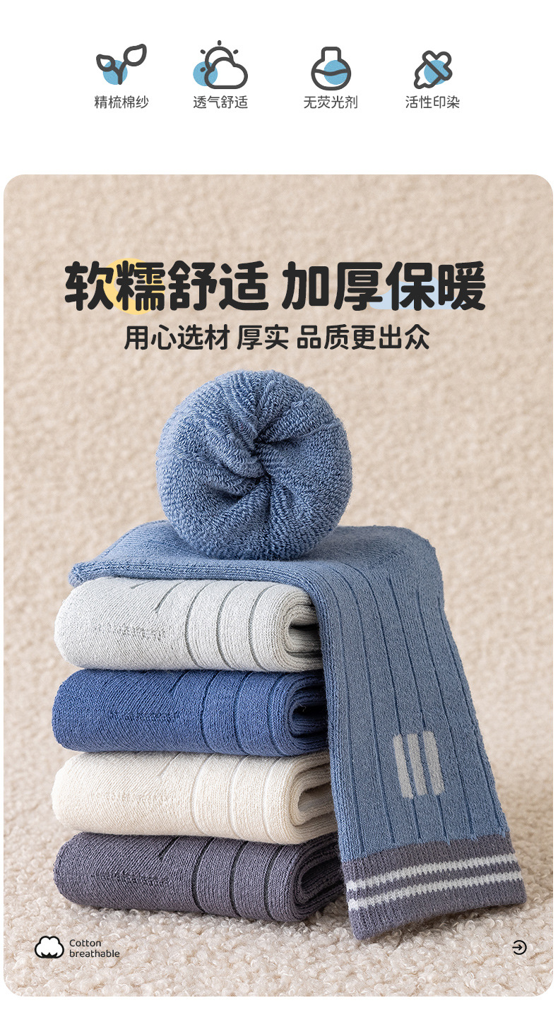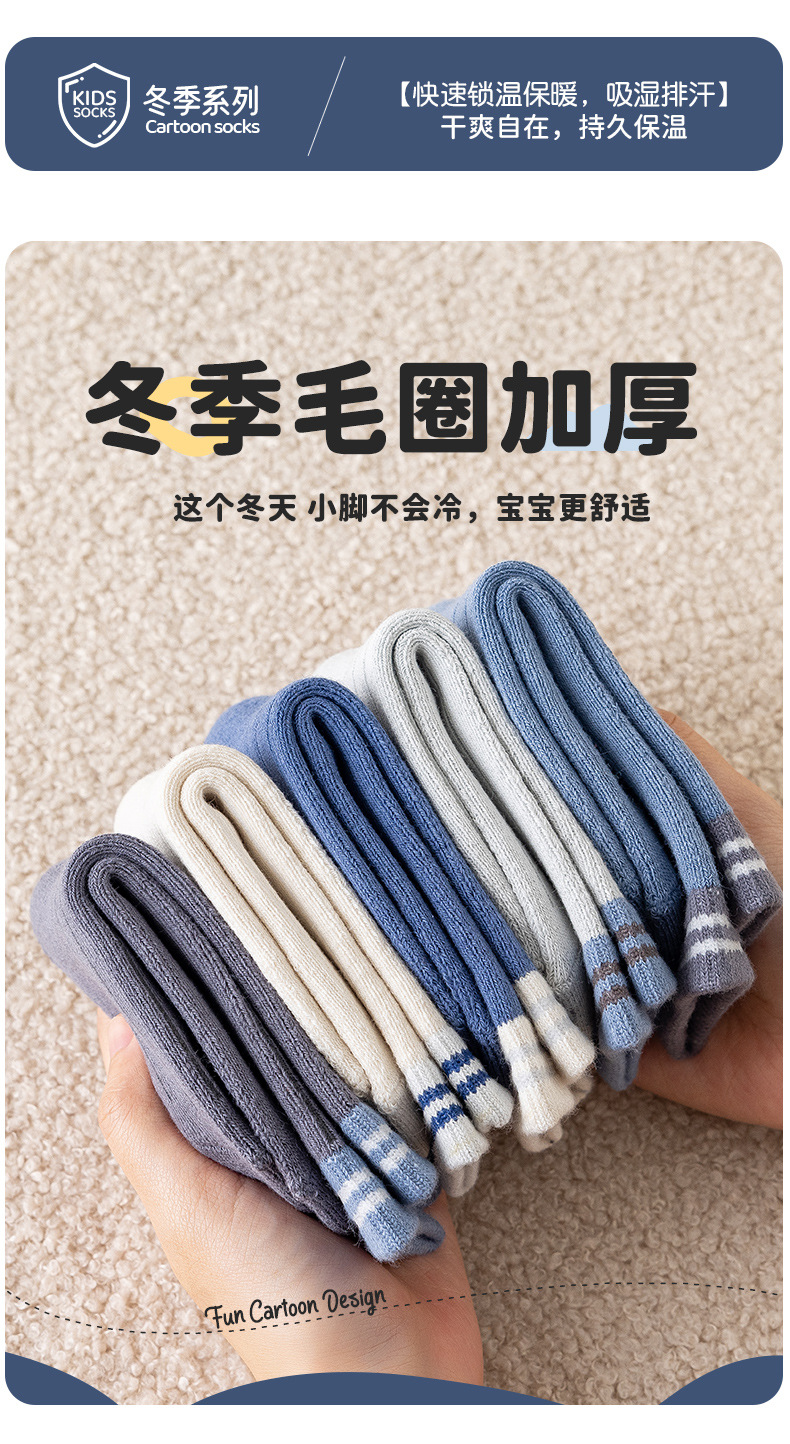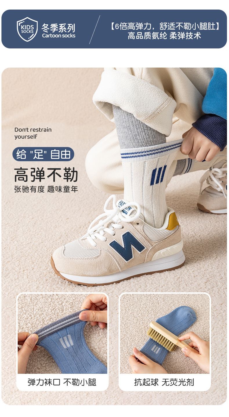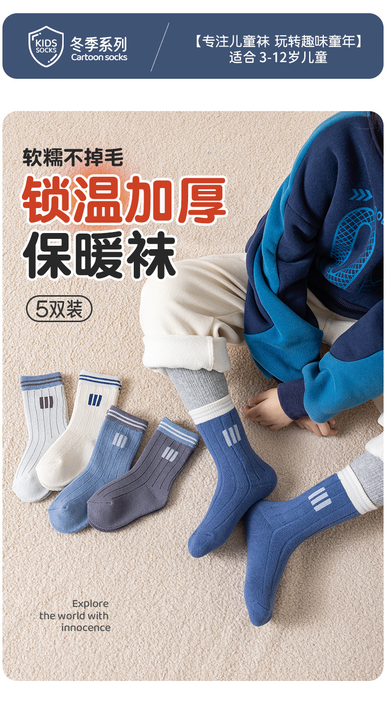 어린이 가을과 겨울 두꺼운 따뜻한 테리 양말 Luo Kou 스트라이프 어린이 양말 땀 흡수성 통기성 기모 따뜻한 내마모성 튜브 양말스토어 가기