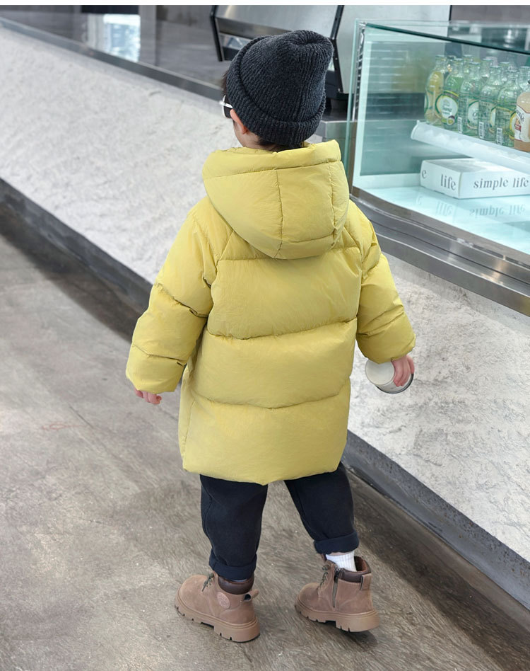 어린이 다운 자켓 겨울 2024 새 소년 중간 길이의 코트 남자 아기 겨울 흰 오리 아래 따뜻한 면화 패딩 코트