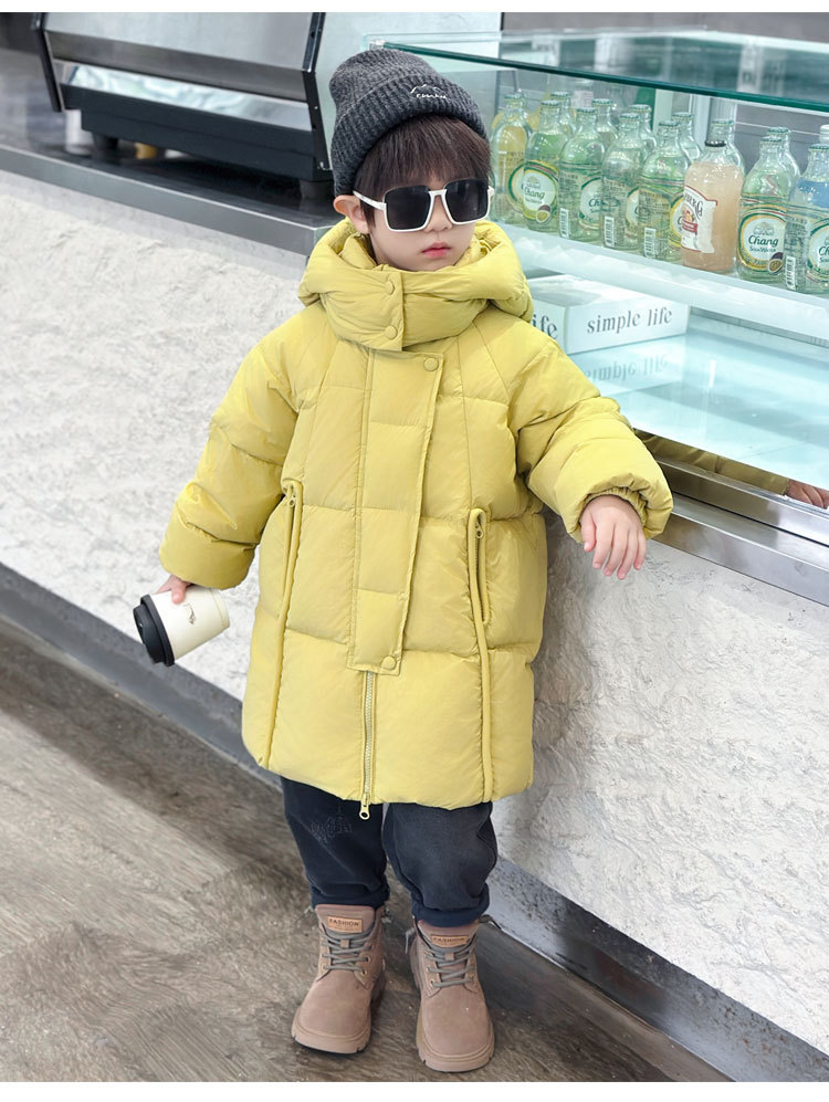 어린이 다운 자켓 겨울 2024 새 소년 중간 길이의 코트 남자 아기 겨울 흰 오리 아래 따뜻한 면화 패딩 코트스토어 가기