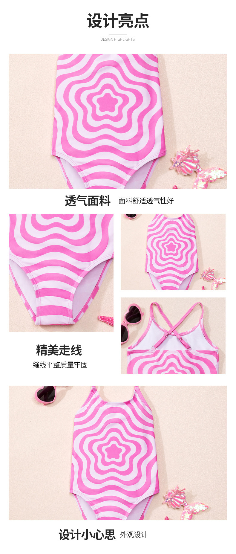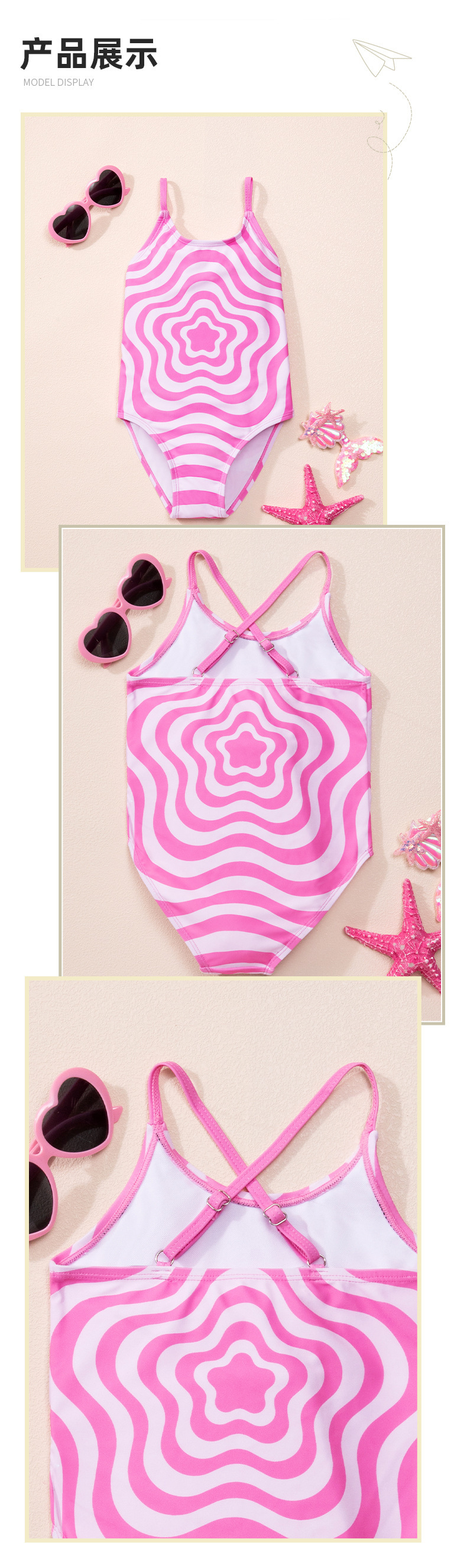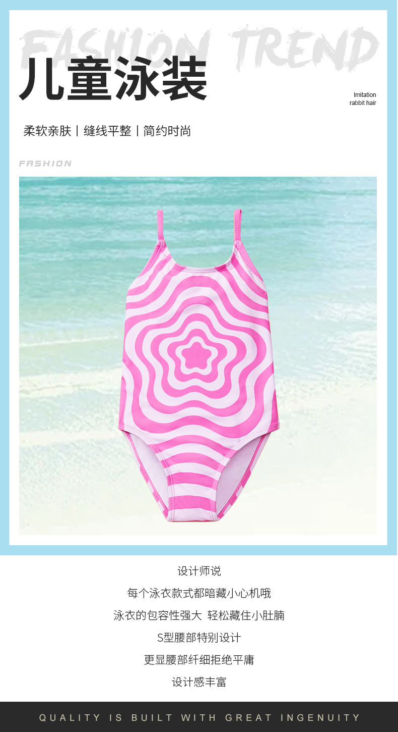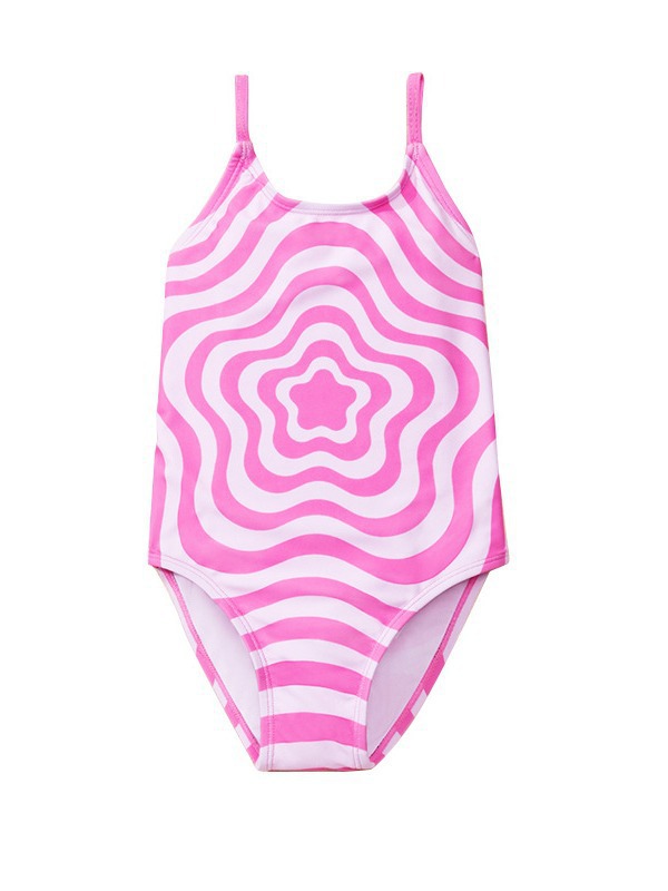 아마존 소녀 원피스 수영복 2024 유럽과 미국의 국경 간 제조 업체 도매 아기 어린이 웨이브 핑크 아동 수영복