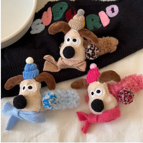 • 갈색 모자 스카프 강아지 플러시 덕빌 클립
