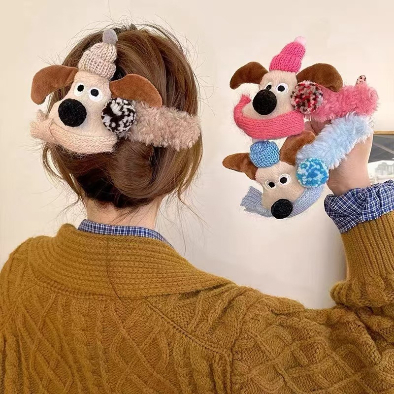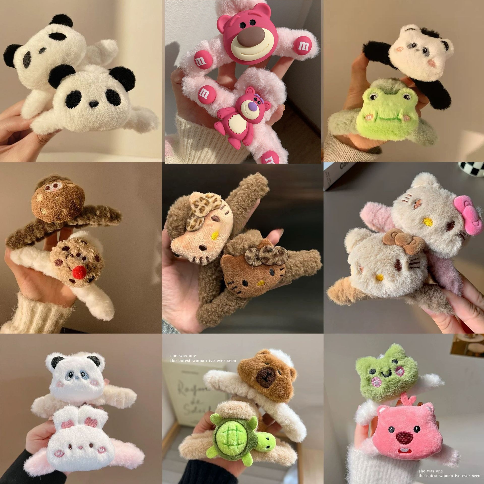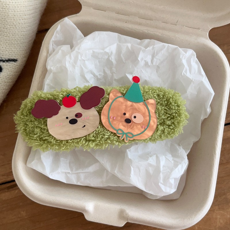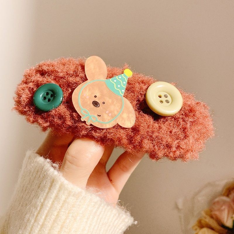 가을과 겨울 양고기 양모 귀여운 곰 머리핀 대형 봉제 덕머스 클립 워시 헤어 액세서리 소녀 사이드 뱅 클립