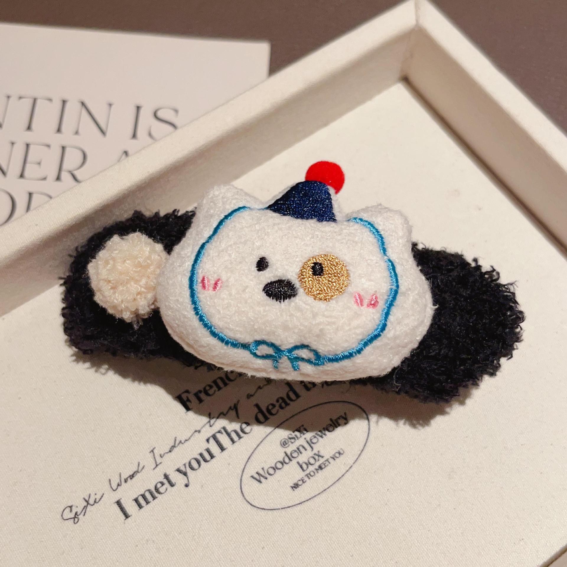 • 검은 귀 강아지 공 대형 봉제 머리핀