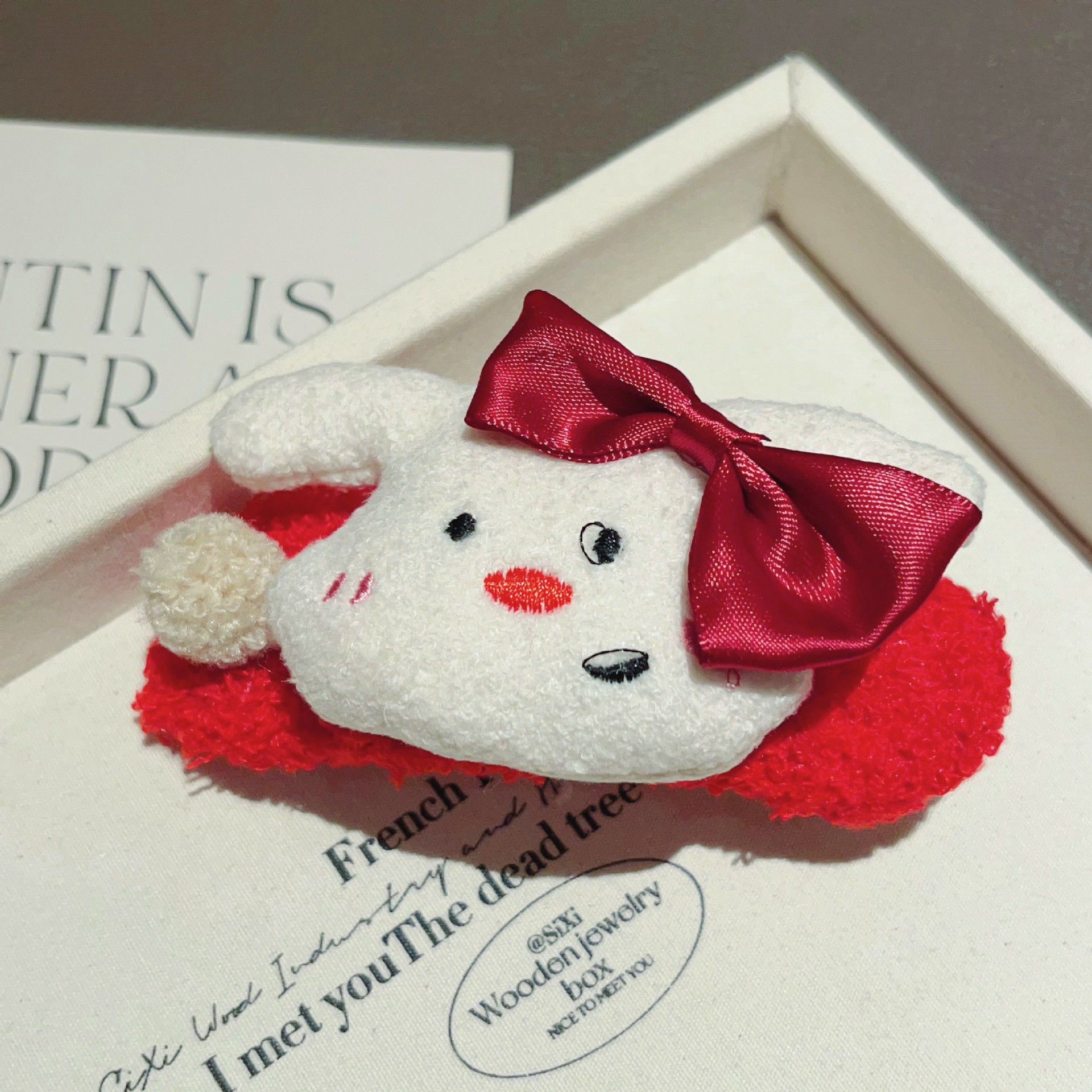 • 장미 빨간 모자 스카프 강아지 플러시 덕빌 클립