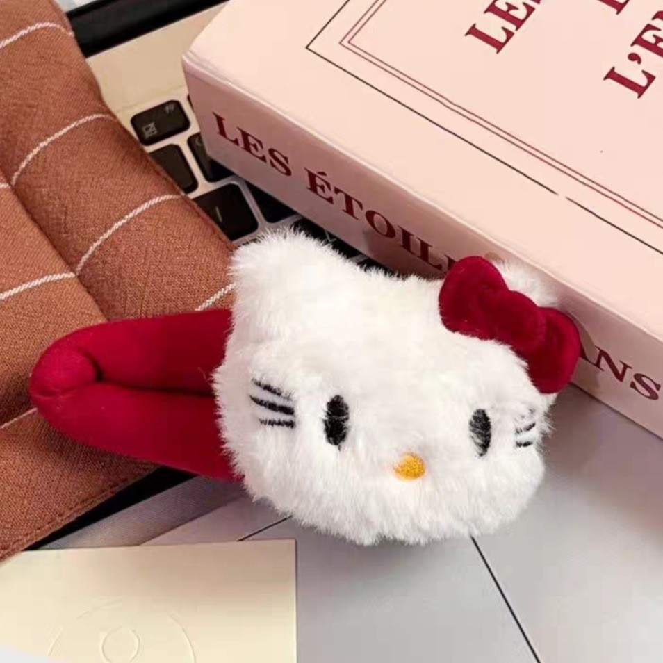 • 화이트 KT 고양이 볼 봉제 머리핀