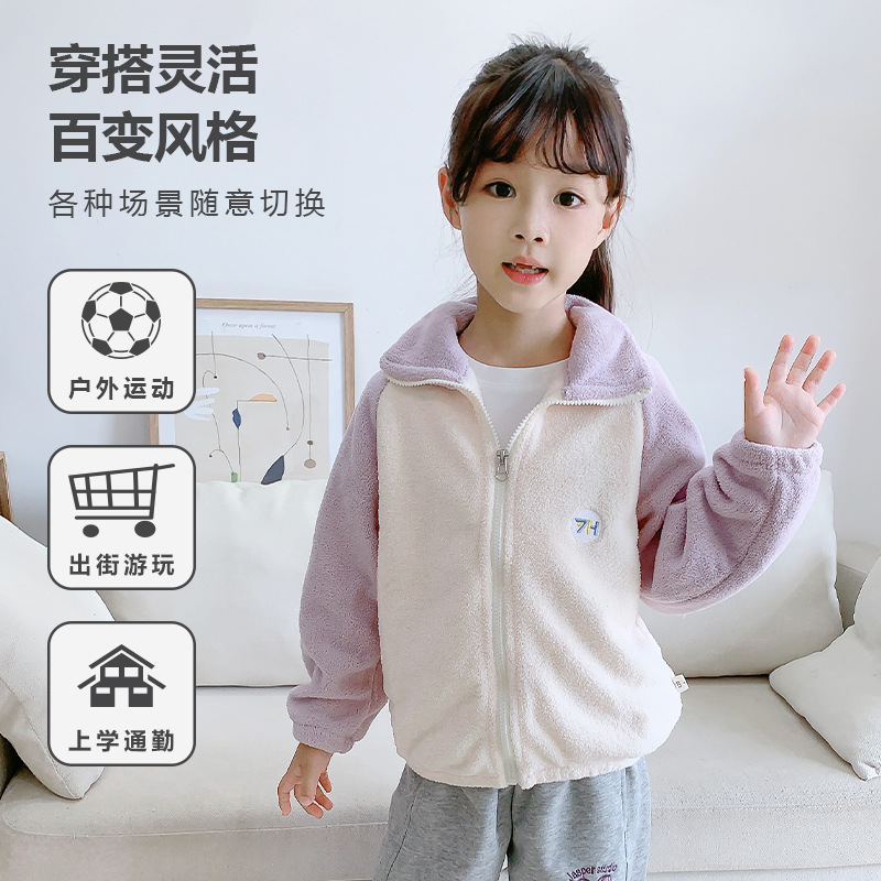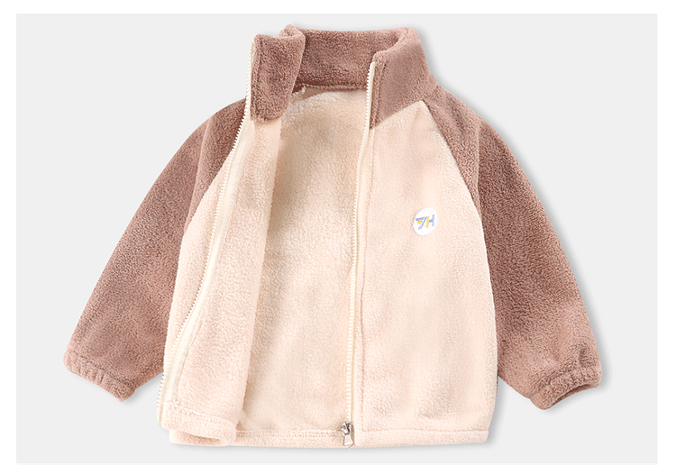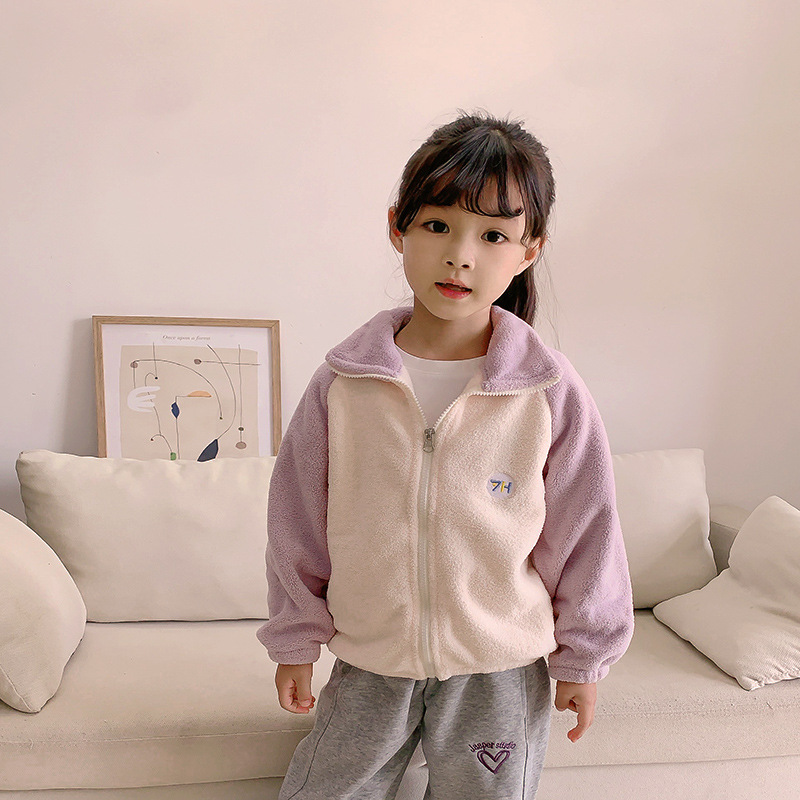 아기 코트 가을 겨울 퍼프 벨벳 배색 아동용 지퍼 상의 남녀 공용 스탠드 칼라 재킷 두꺼운 보온스토어 가기