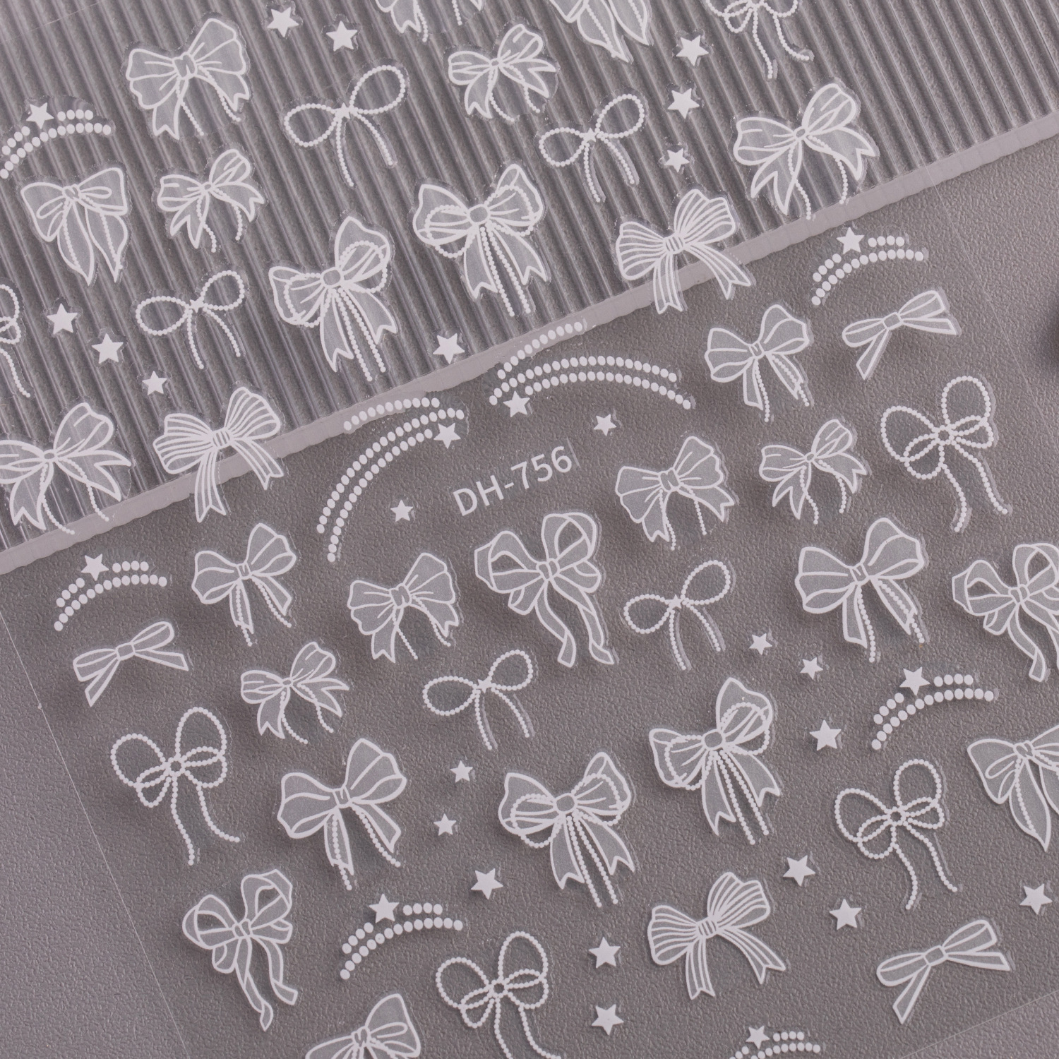 Ins 활 네일 아트 스티커 스테레오 귀여운 소녀의 하트 화이트 리본 활 네일 스티커 장식스토어 가기