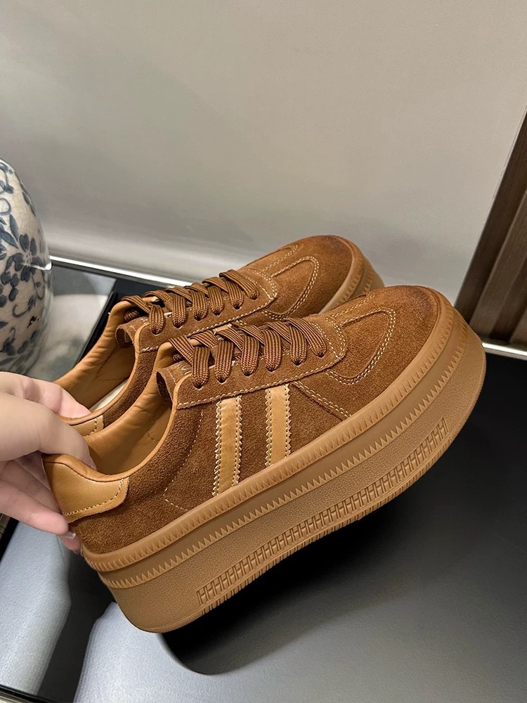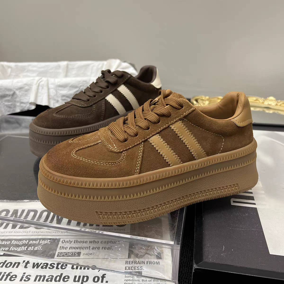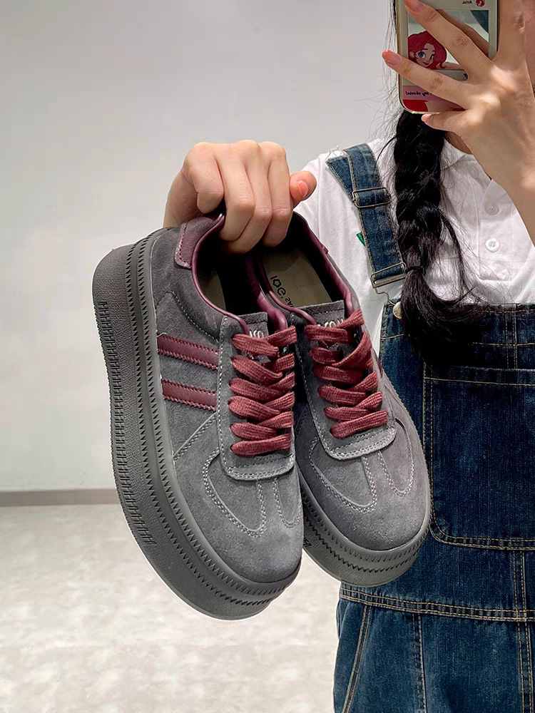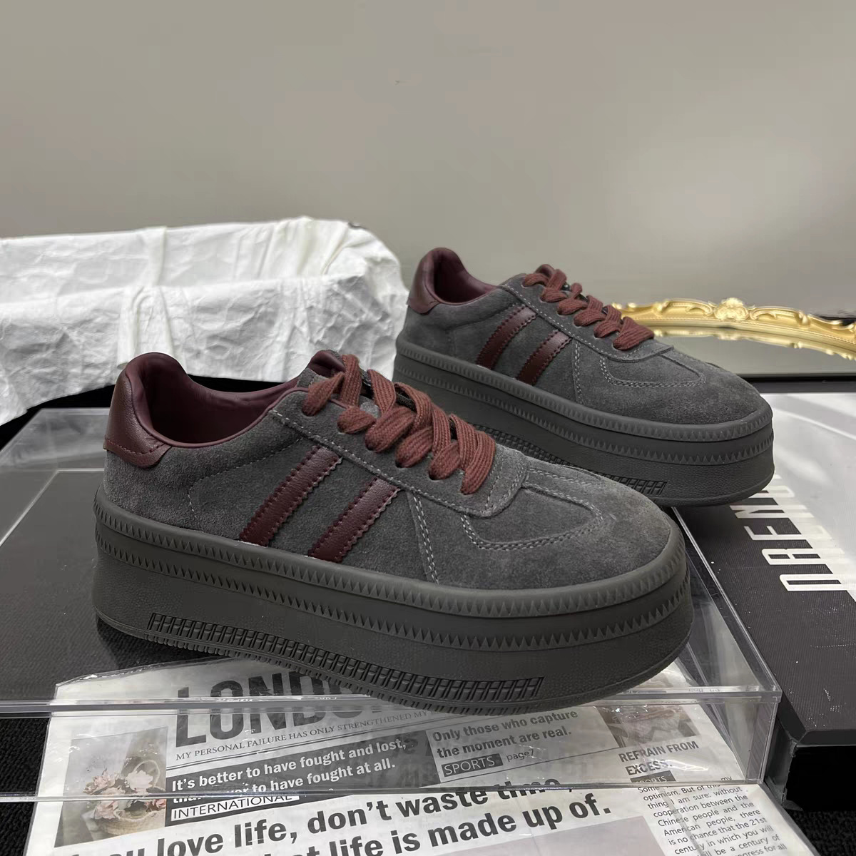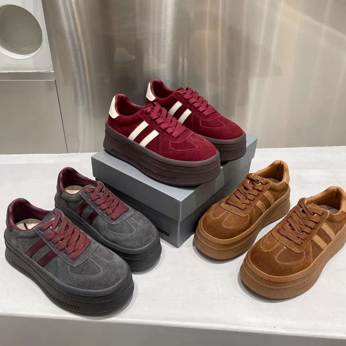 두꺼운 밑창의 무광 소가죽 스니커즈 여성화 2025 신상 가을 겨울 스포츠 캐주얼화 플랫폼 밑창 레트로 데츠쉰 여성화스토어 가기