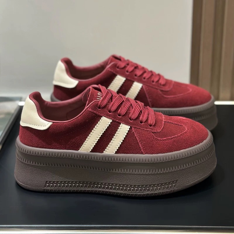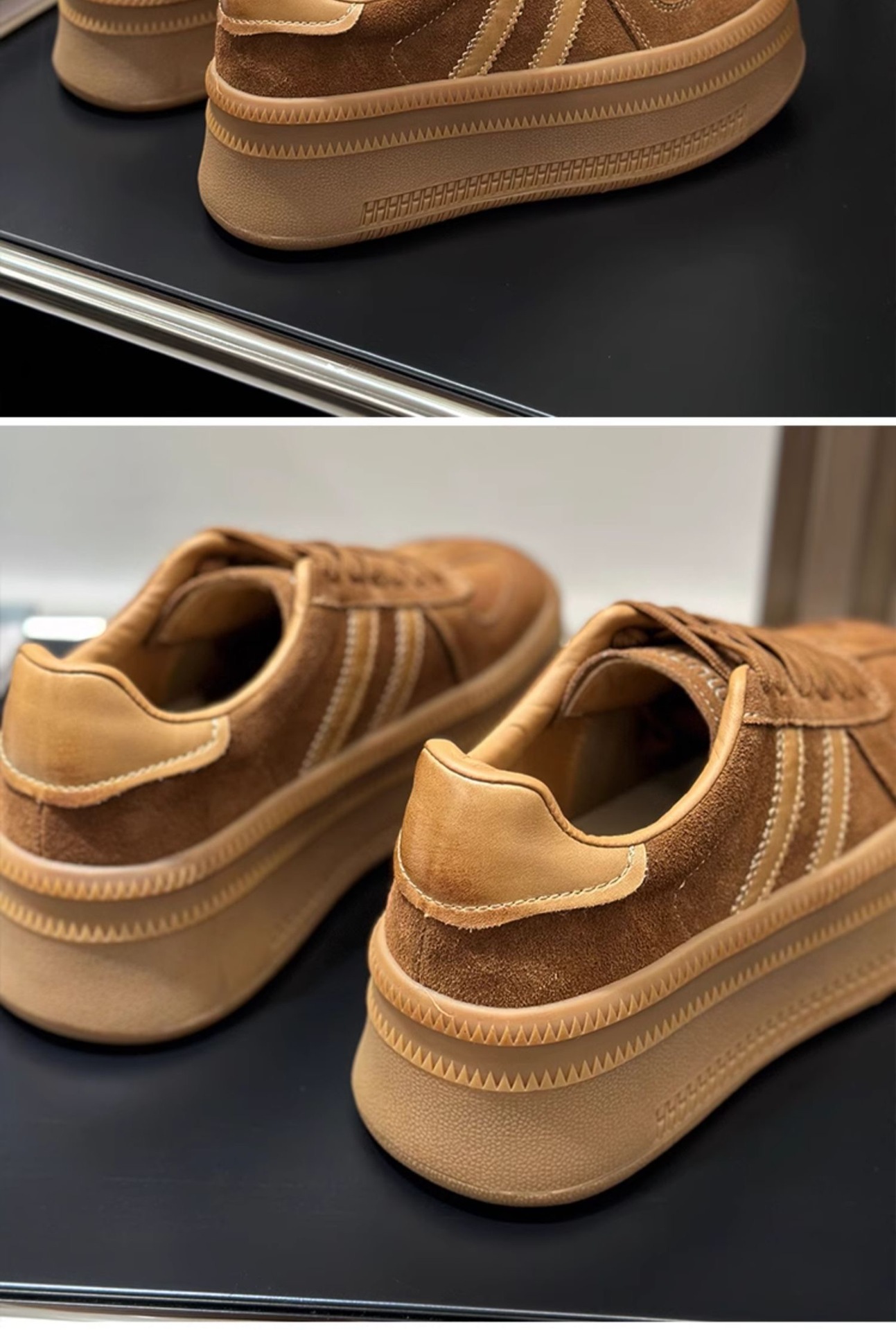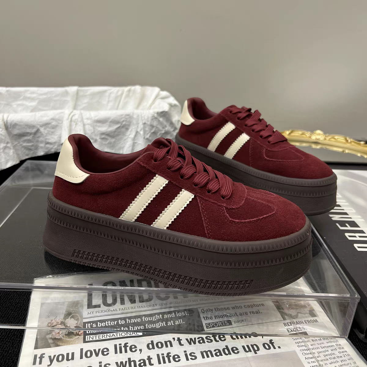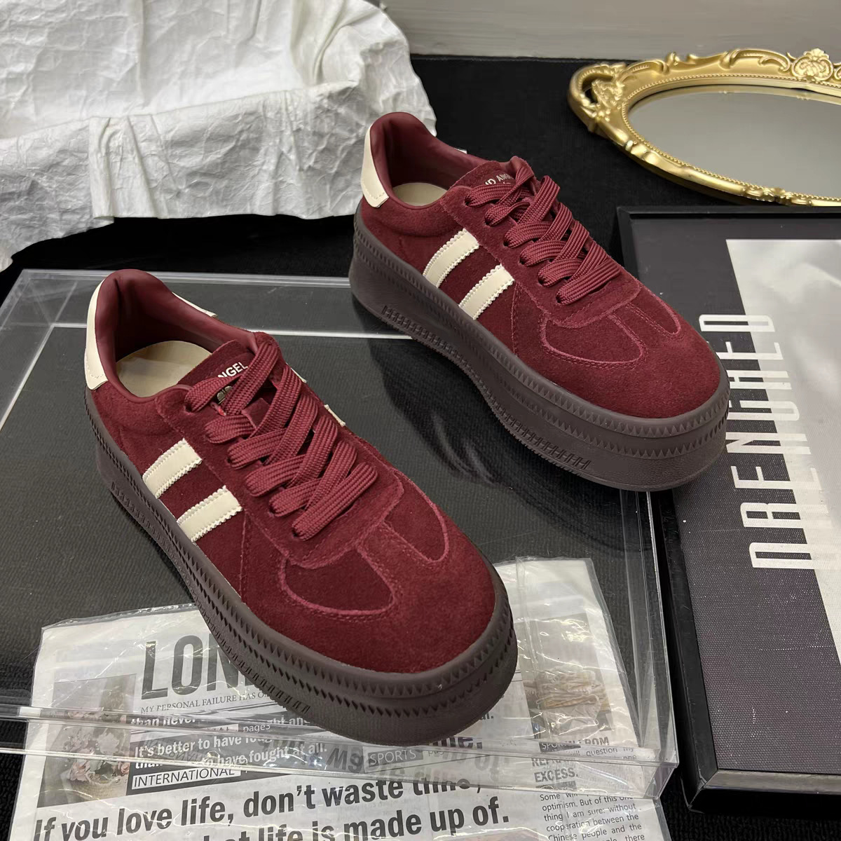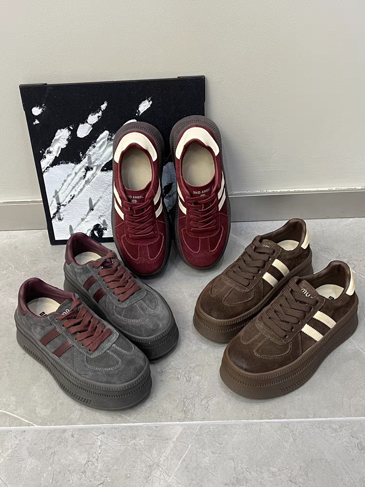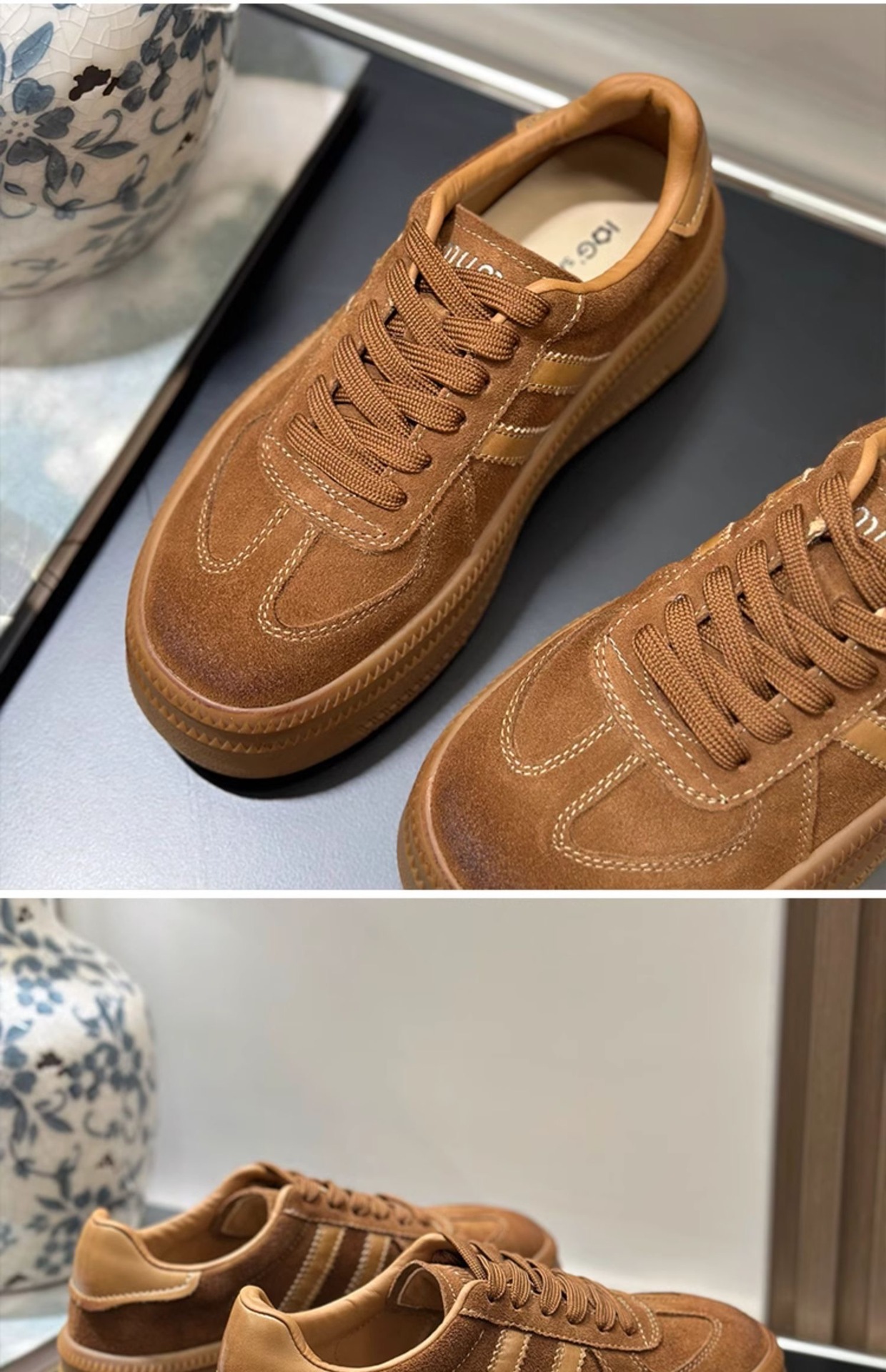두꺼운 밑창의 무광 소가죽 스니커즈 여성화 2025 신상 가을 겨울 스포츠 캐주얼화 플랫폼 밑창 레트로 데츠쉰 여성화스토어 가기