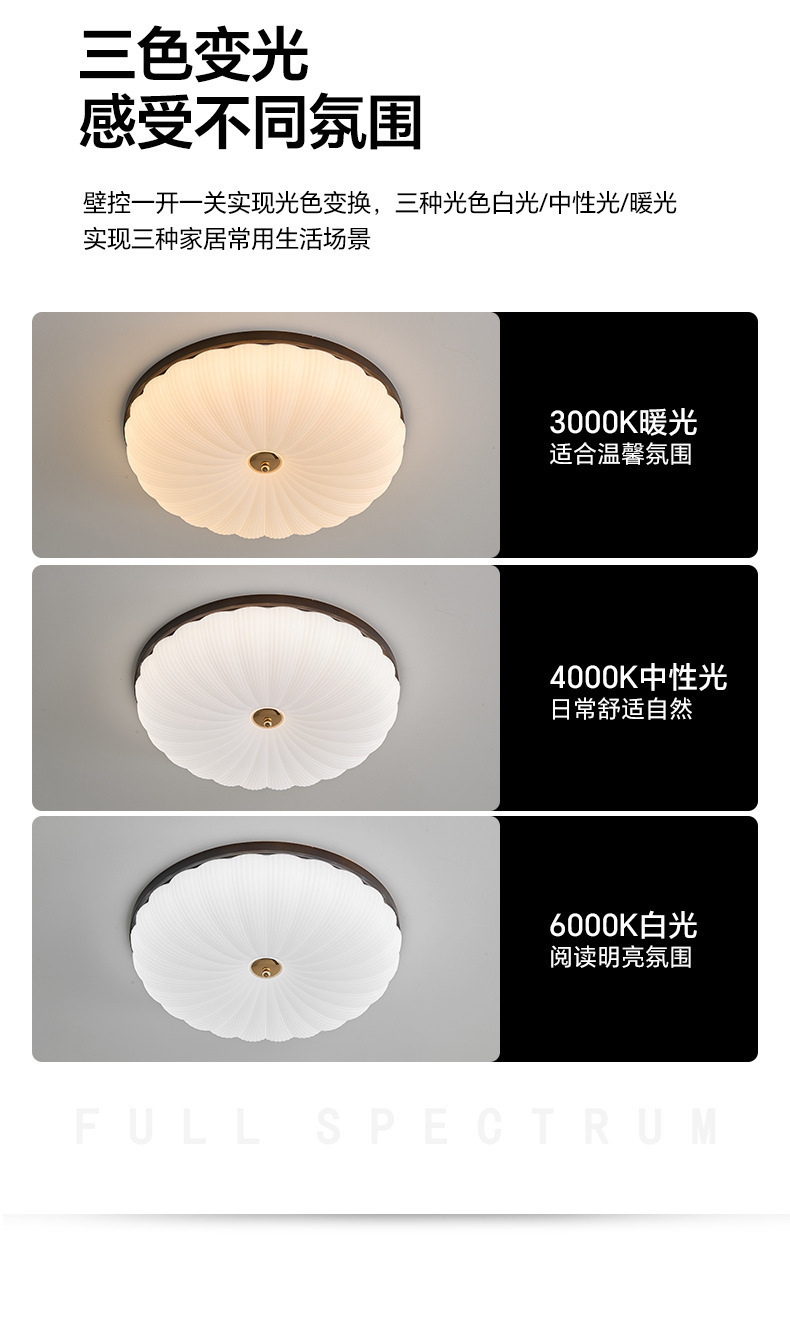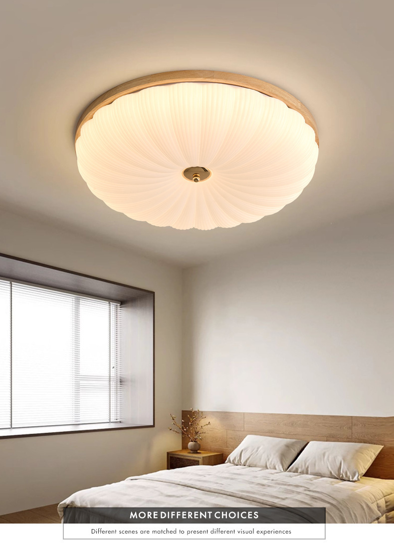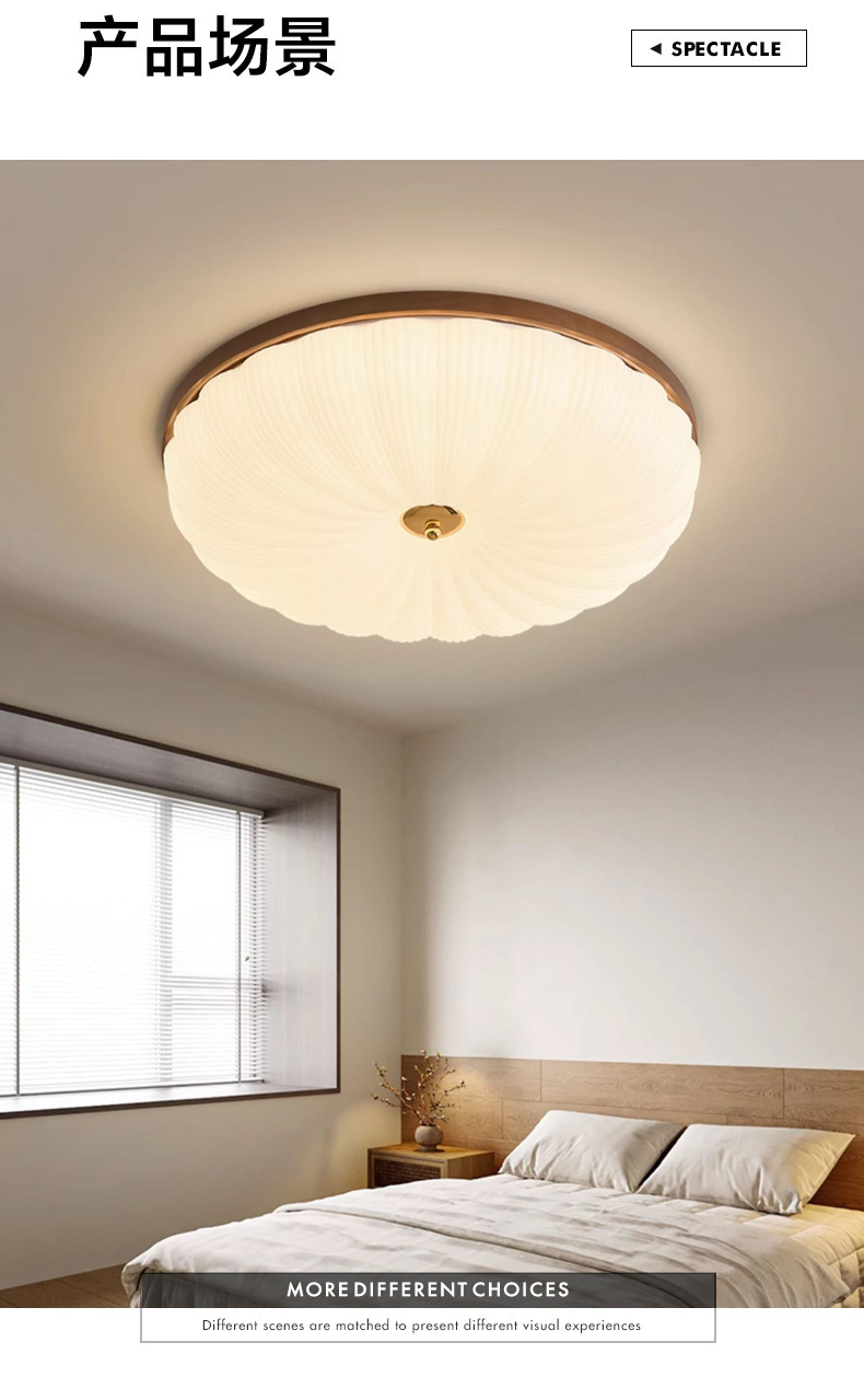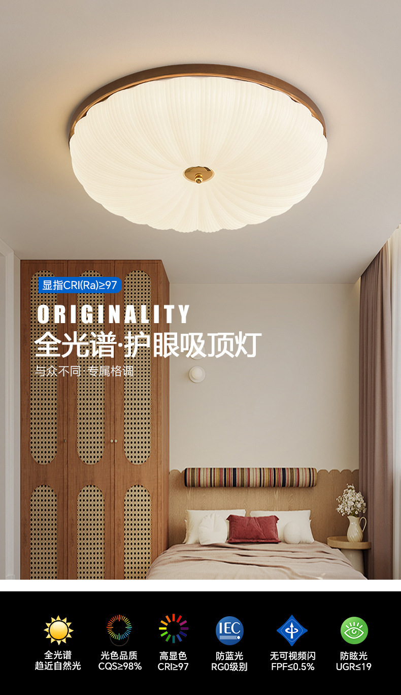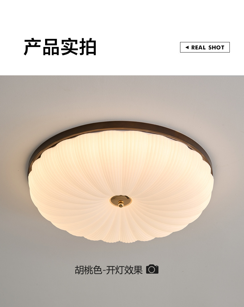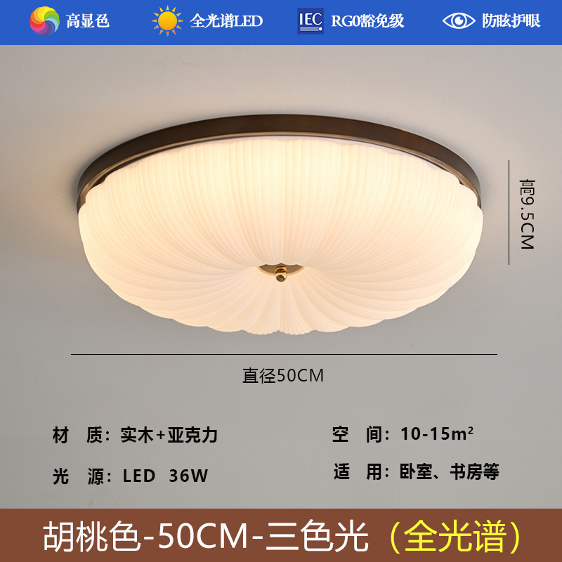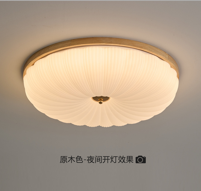새로운 중국 천장 램프 단단한 나무 현대 간단한 호박 창조적 인 쉘 어린이 방 전체 조명 스펙트럼 연구 침실 램프