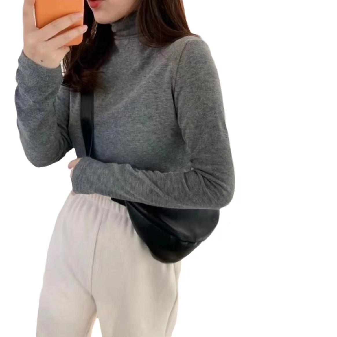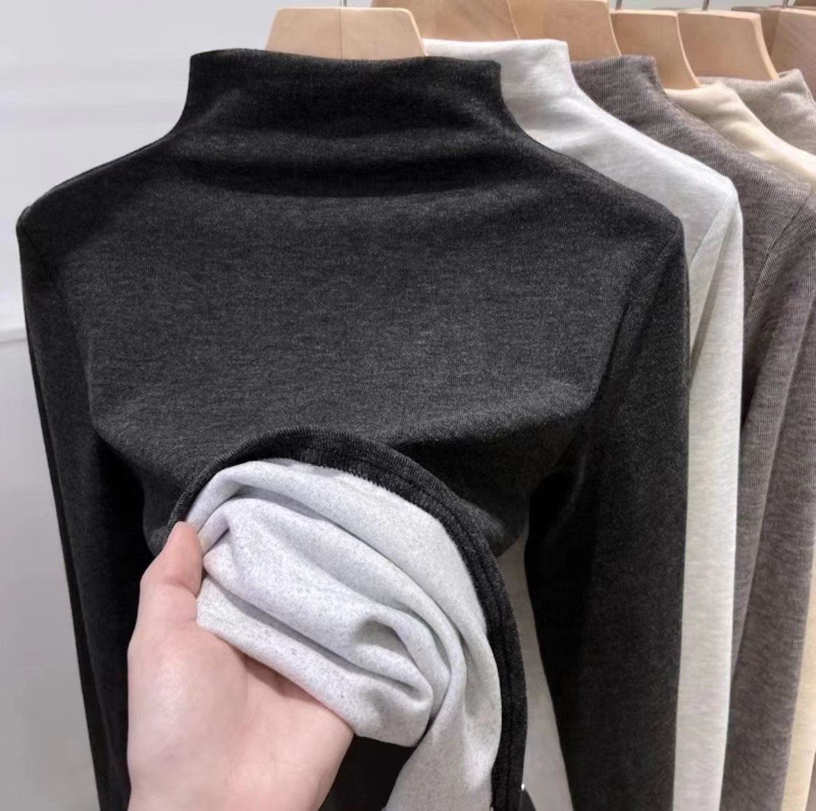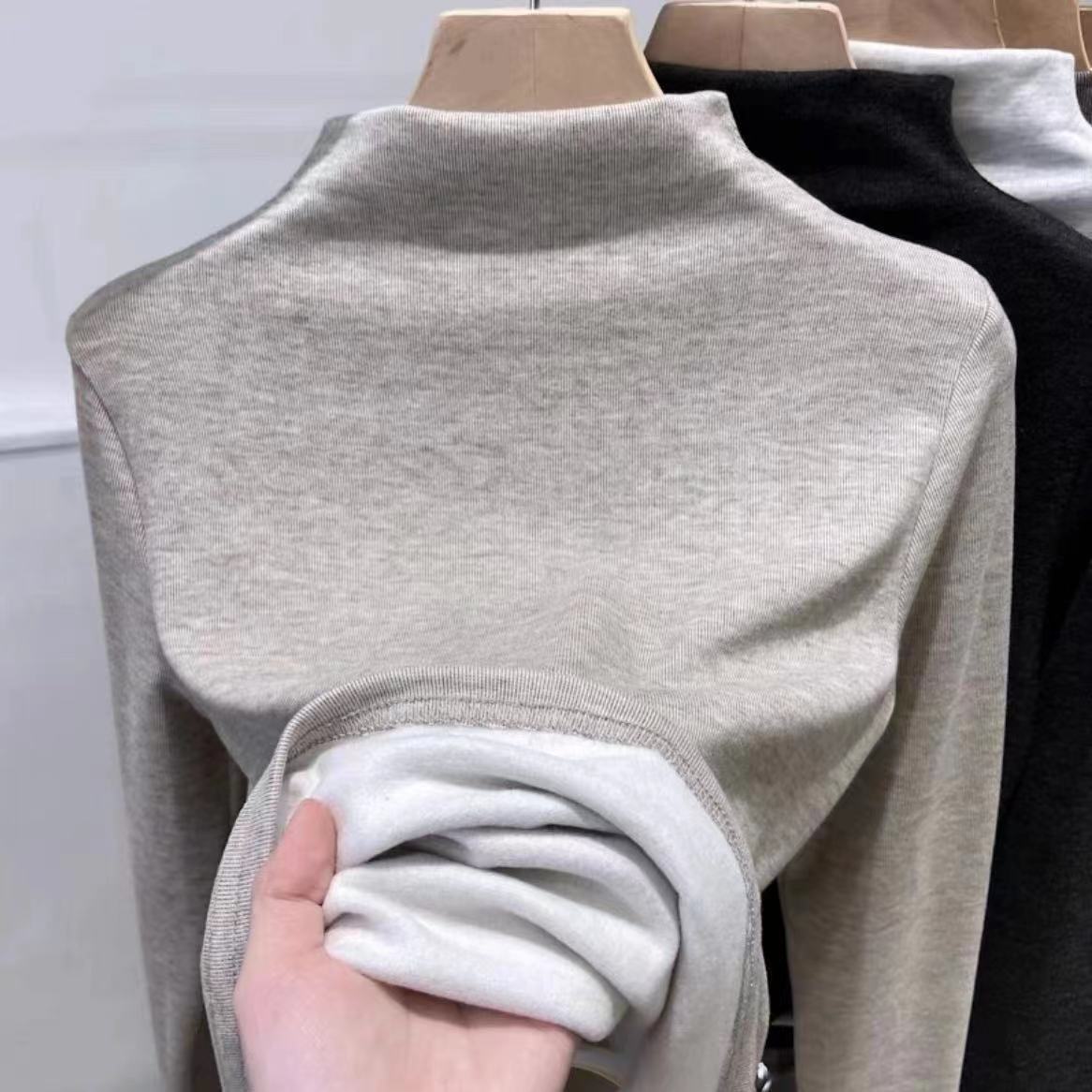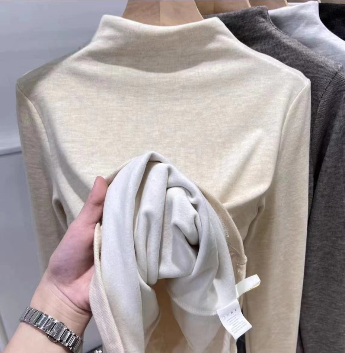 가을과 겨울 반 높이 칼라 새 기모 여성용 샌딩 가열 일정한 온도 스레드 기본 셔츠와 함께 플리츠 슬림 핏 탑스토어 가기