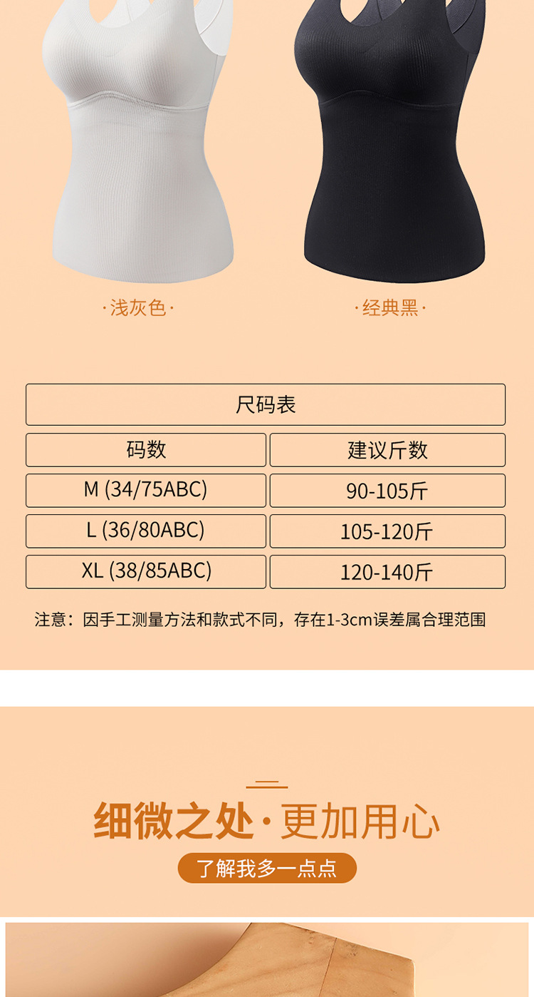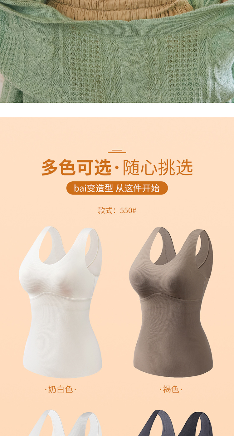 가을과 겨울 원활한 양면 샌딩 따뜻한 열 저장 여성 속옷 슬림 핏 바닥 조끼 가슴 패드가 달린 원피스 조끼스토어 가기