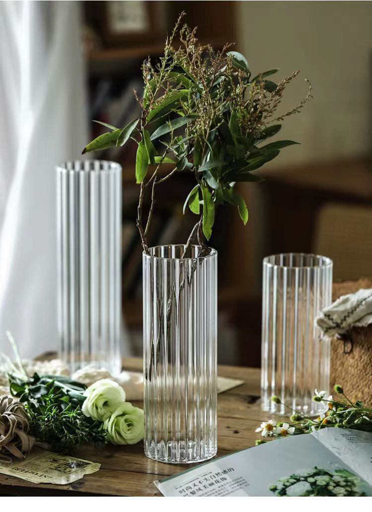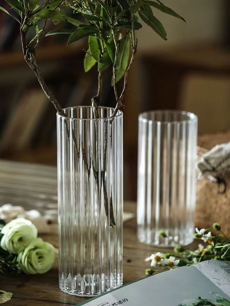 줄무늬 유리 꽃 배열 꽃병 북유럽 스타일 빛 고급 장식품 홈 식물 수경 풍경 병 수경 식물 병