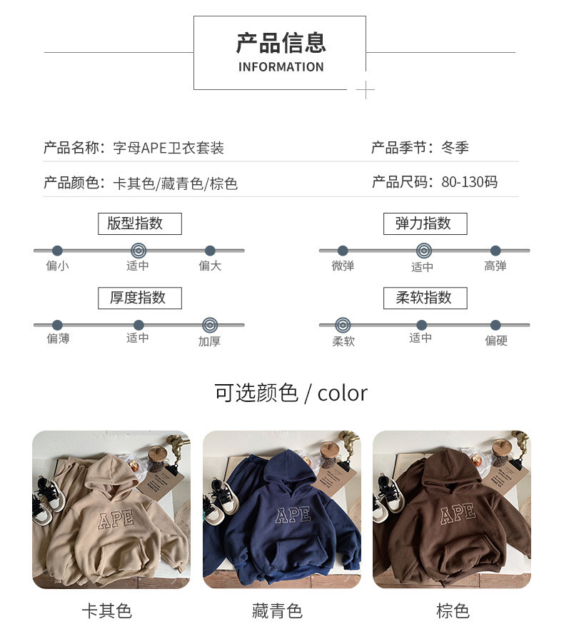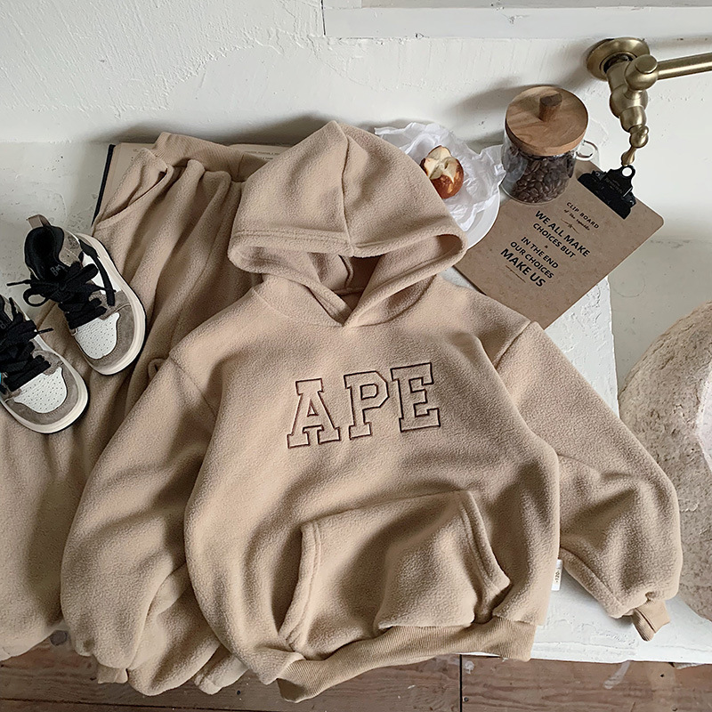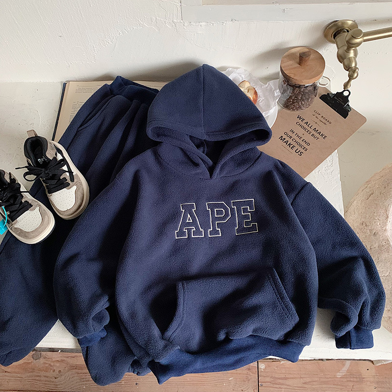 대외 무역 어린이 후드 양털 풀오버 APE 편지 한국 아동복 소년 소녀 캐주얼 스웨터 세트