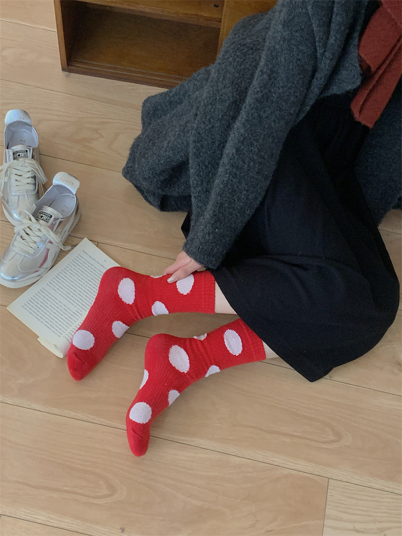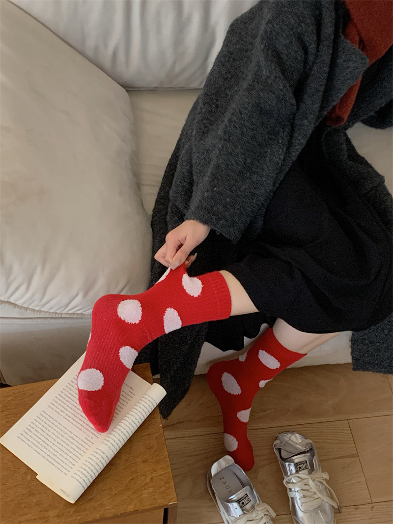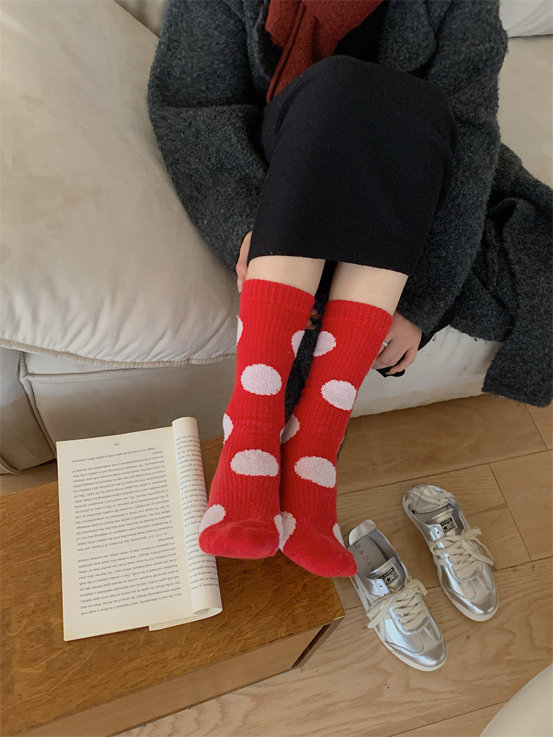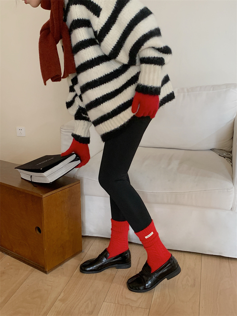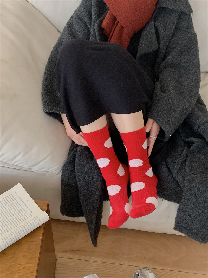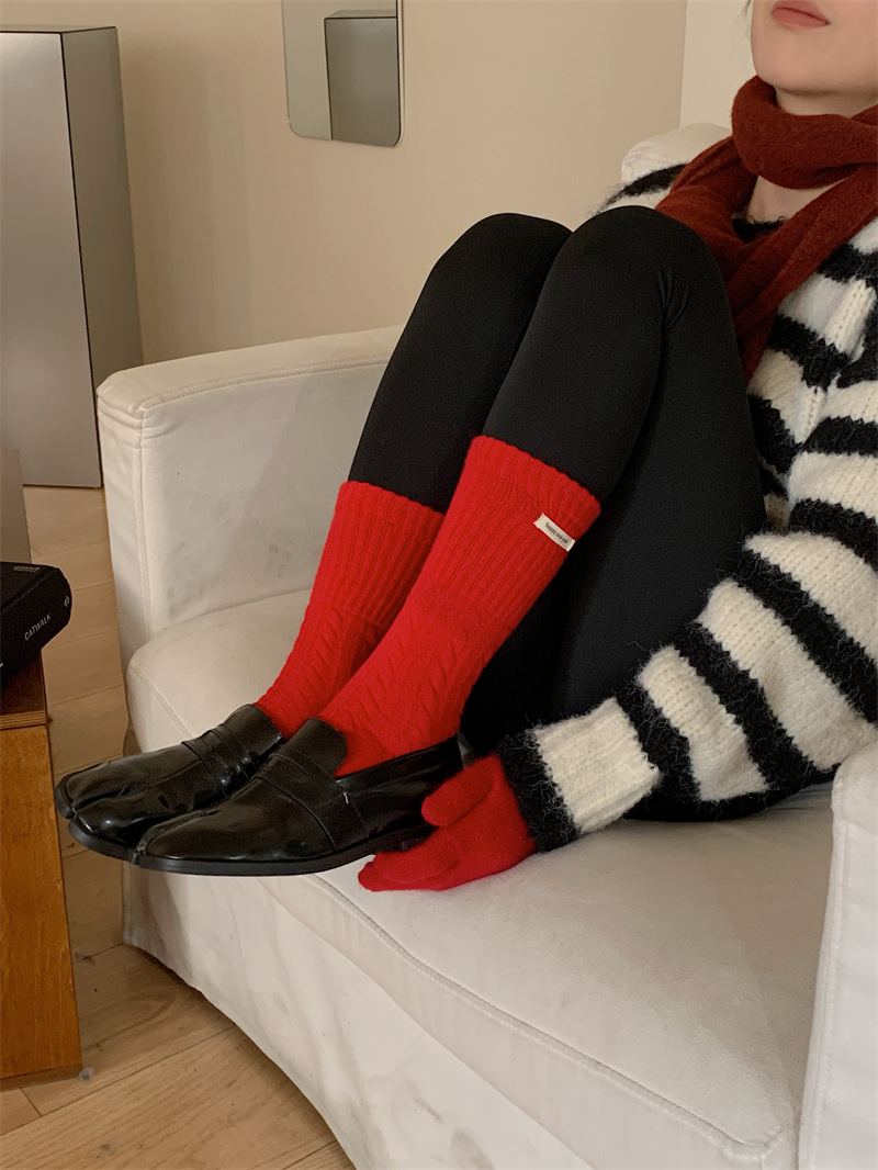 "새해 크리스마스 레드" 빨간 양말 여성 천 라벨 중장 양말 가을과 겨울 큰 파도 트위스트 더미 양말스토어 가기