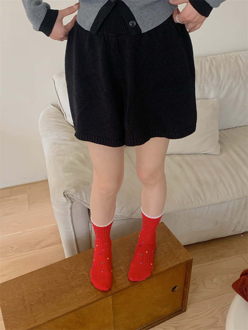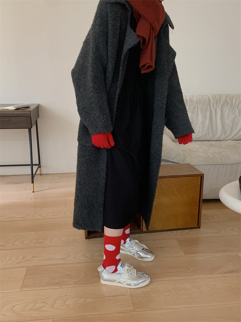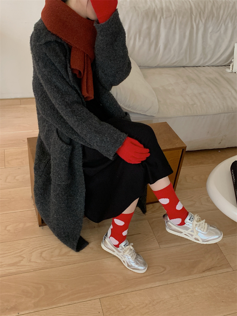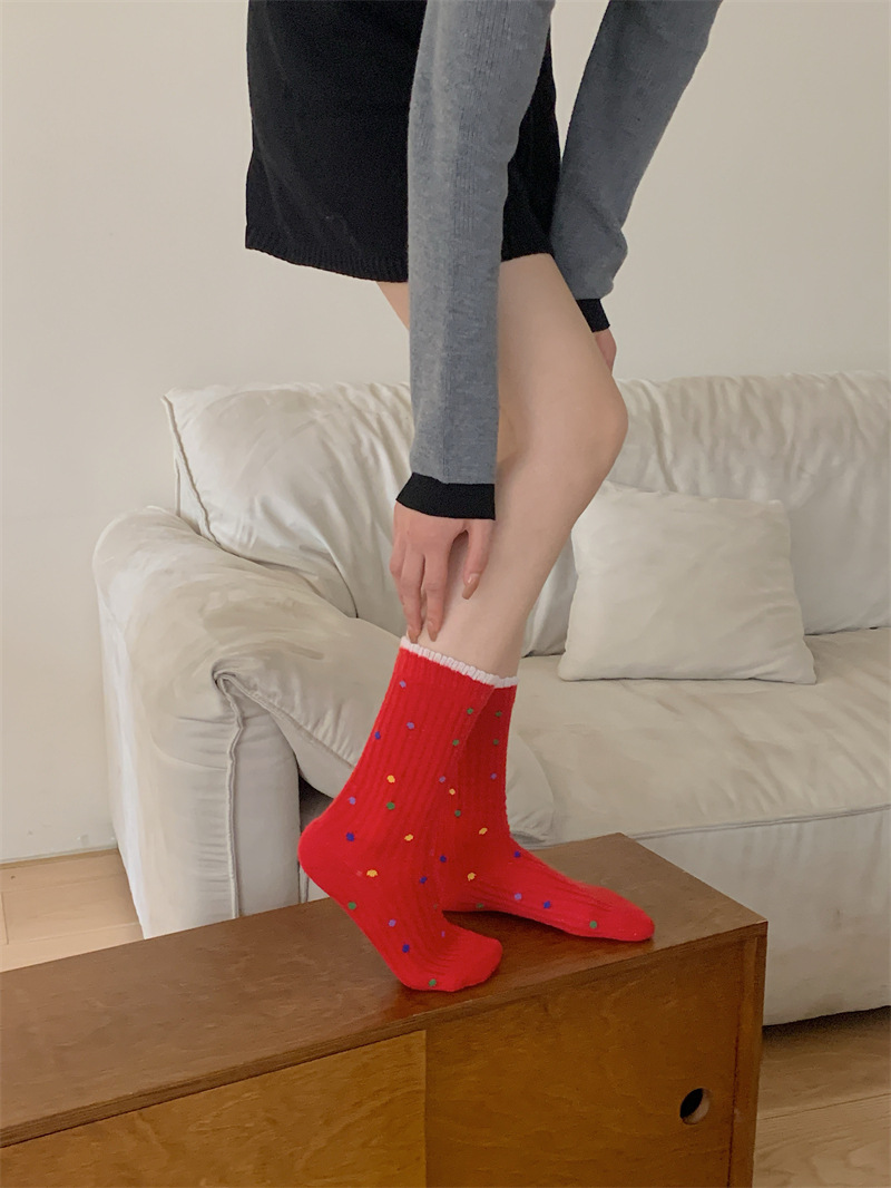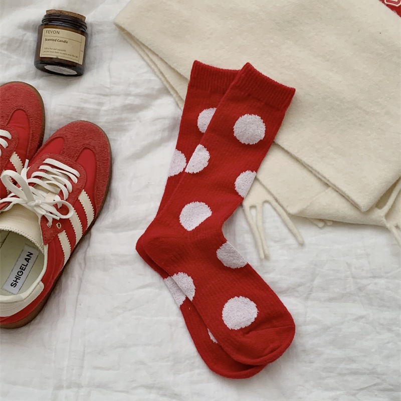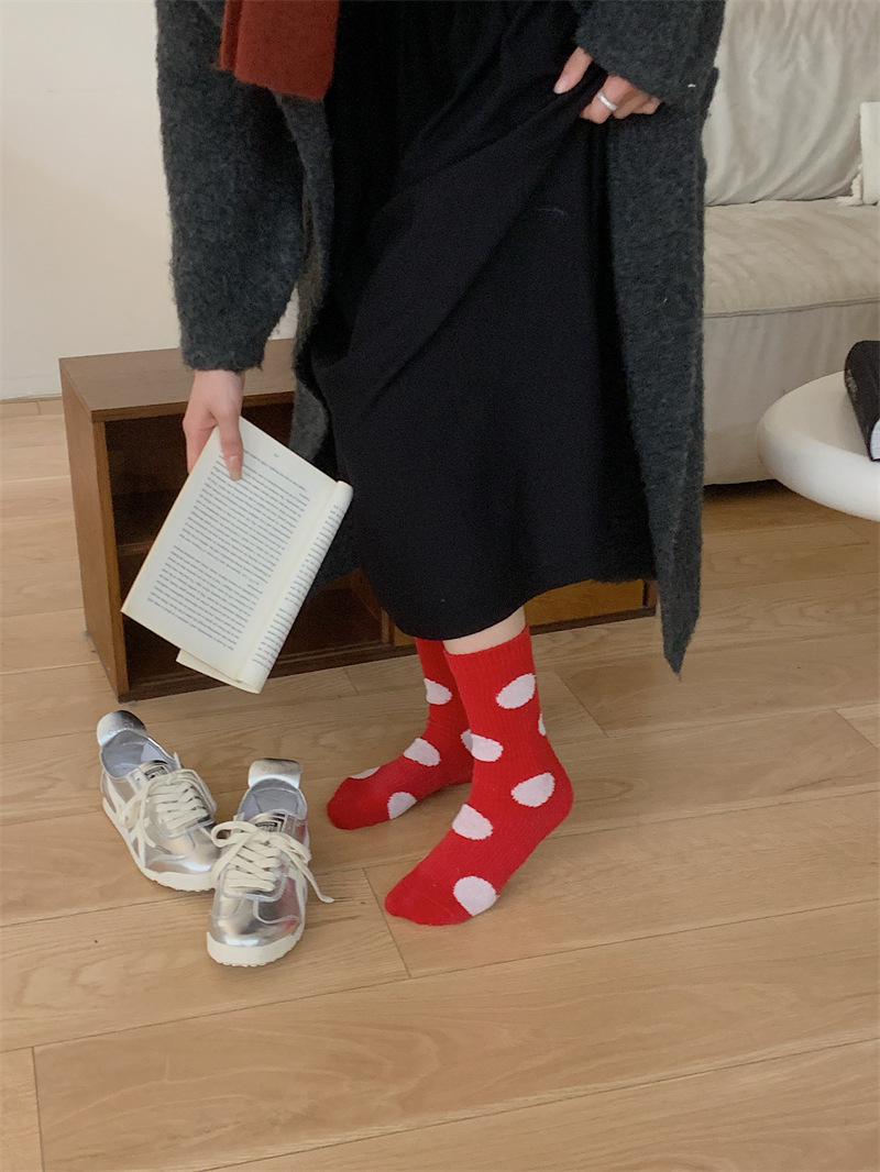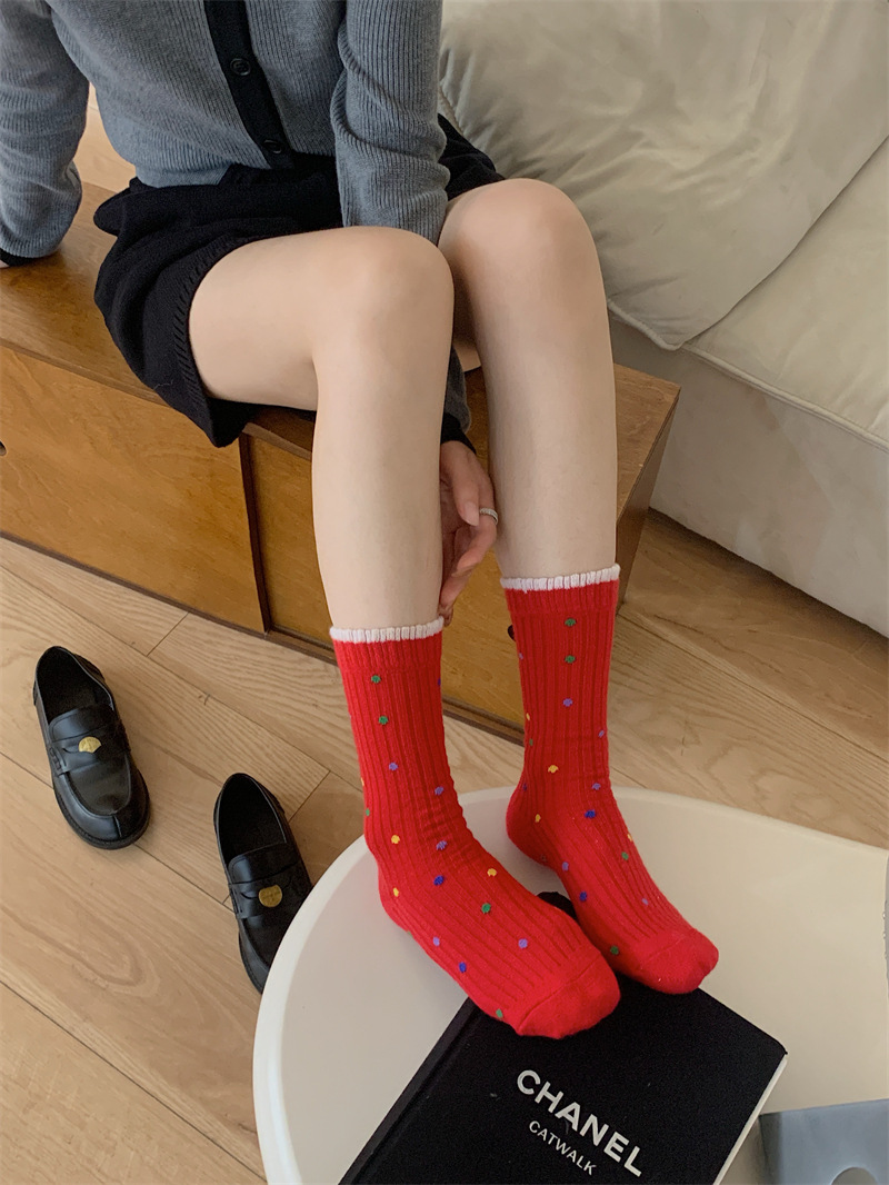 "새해 크리스마스 레드" 빨간 양말 여성 천 라벨 중장 양말 가을과 겨울 큰 파도 트위스트 더미 양말스토어 가기