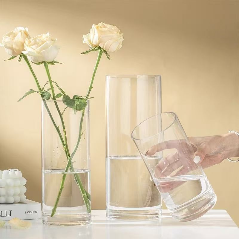 높은 붕규산 유리 수경 식물 병 투명한 꽃병 스트레이트 라운드 꽃 삽입 유리 항아리 작은 물고기 탱크 장식품