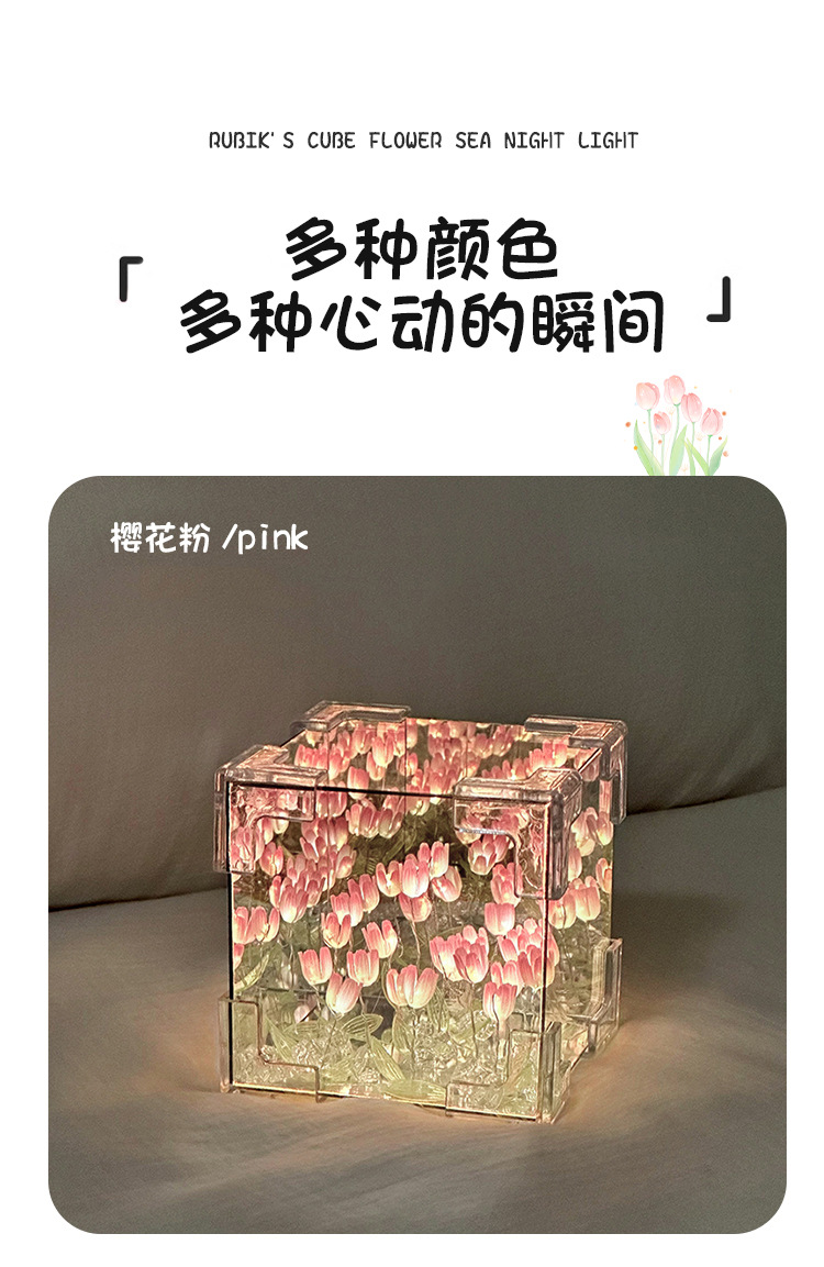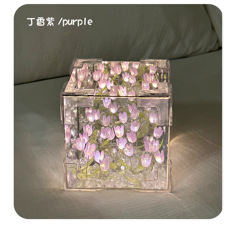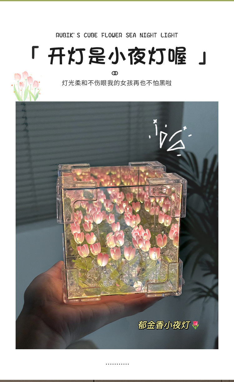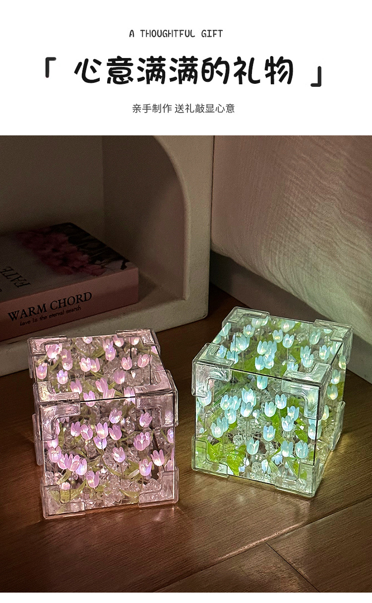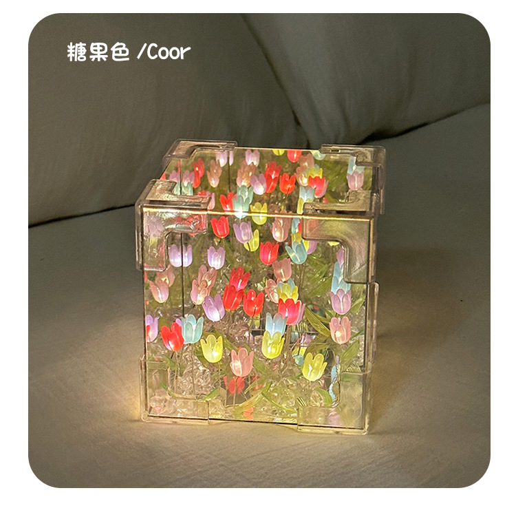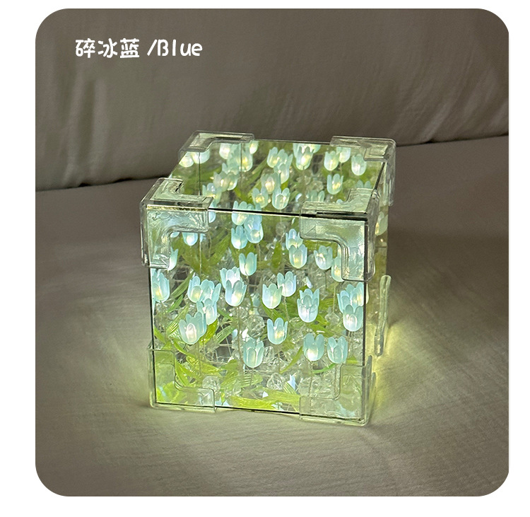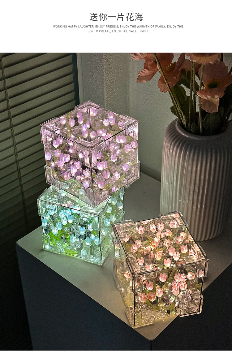 소녀의 생일 선물 꽃 바다 루빅의 큐브 튤립 나이트 라이트 DIY 수제 소재 가방 창조적 인 작은 장난감