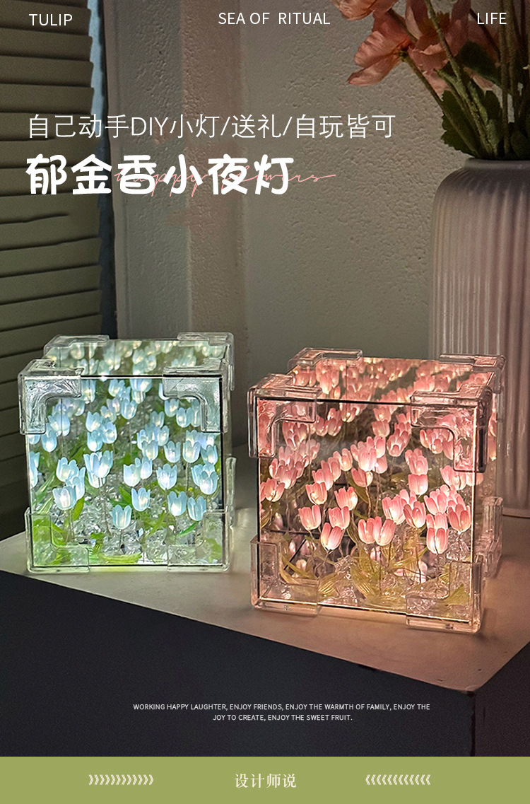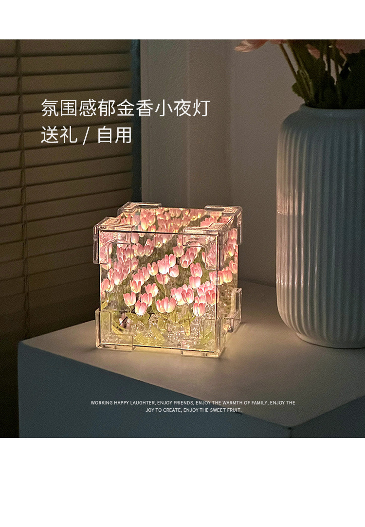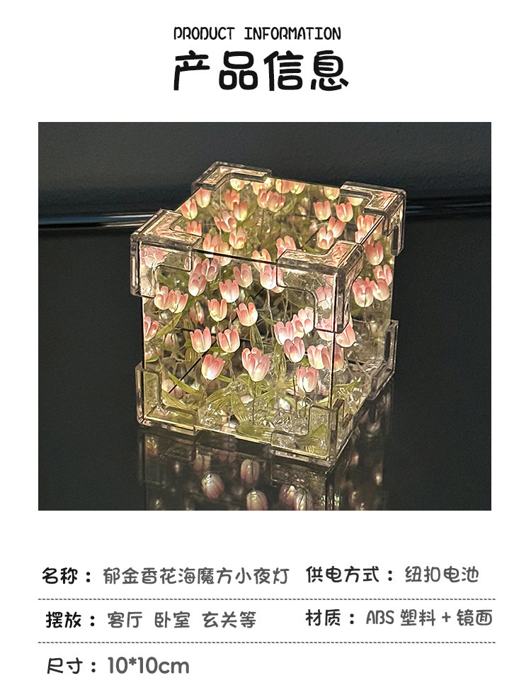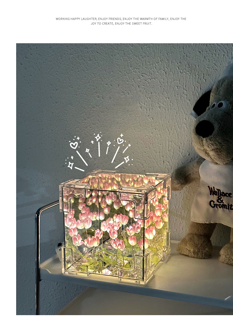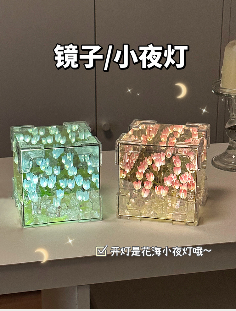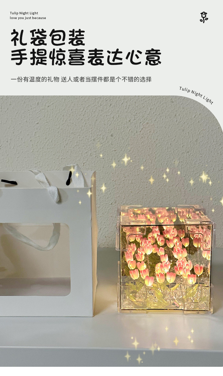 소녀의 생일 선물 꽃 바다 루빅의 큐브 튤립 나이트 라이트 DIY 수제 소재 가방 창조적 인 작은 장난감