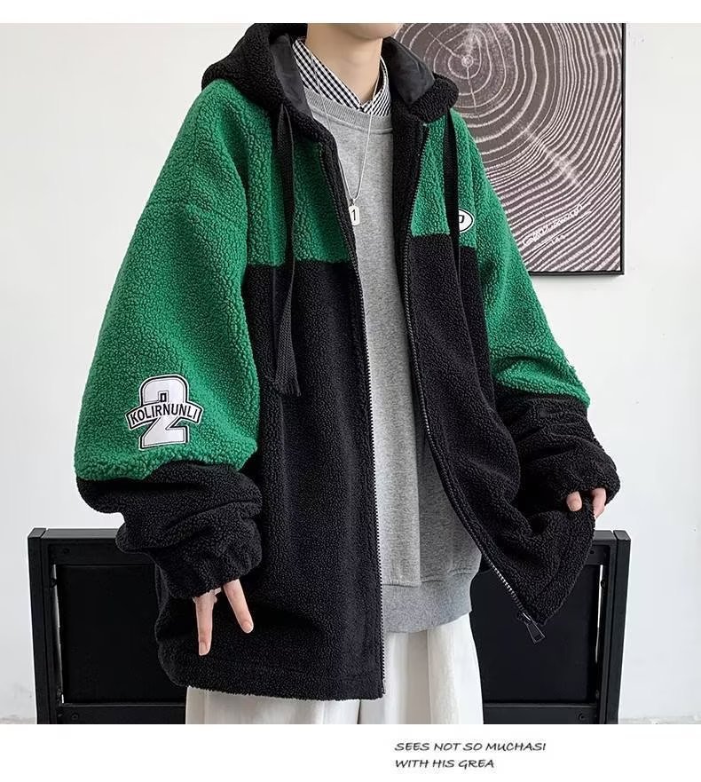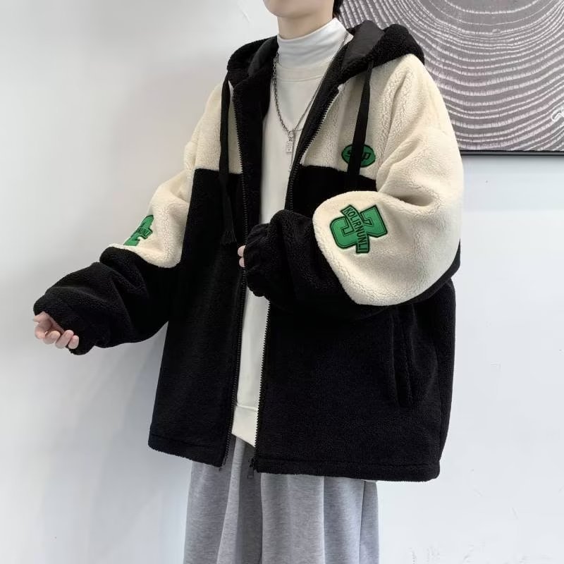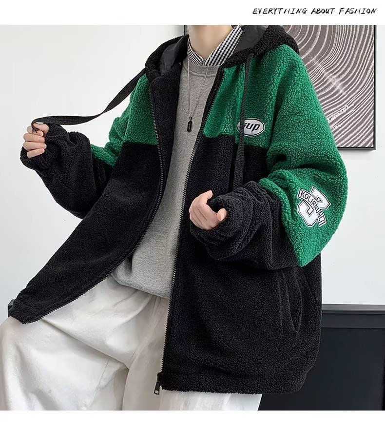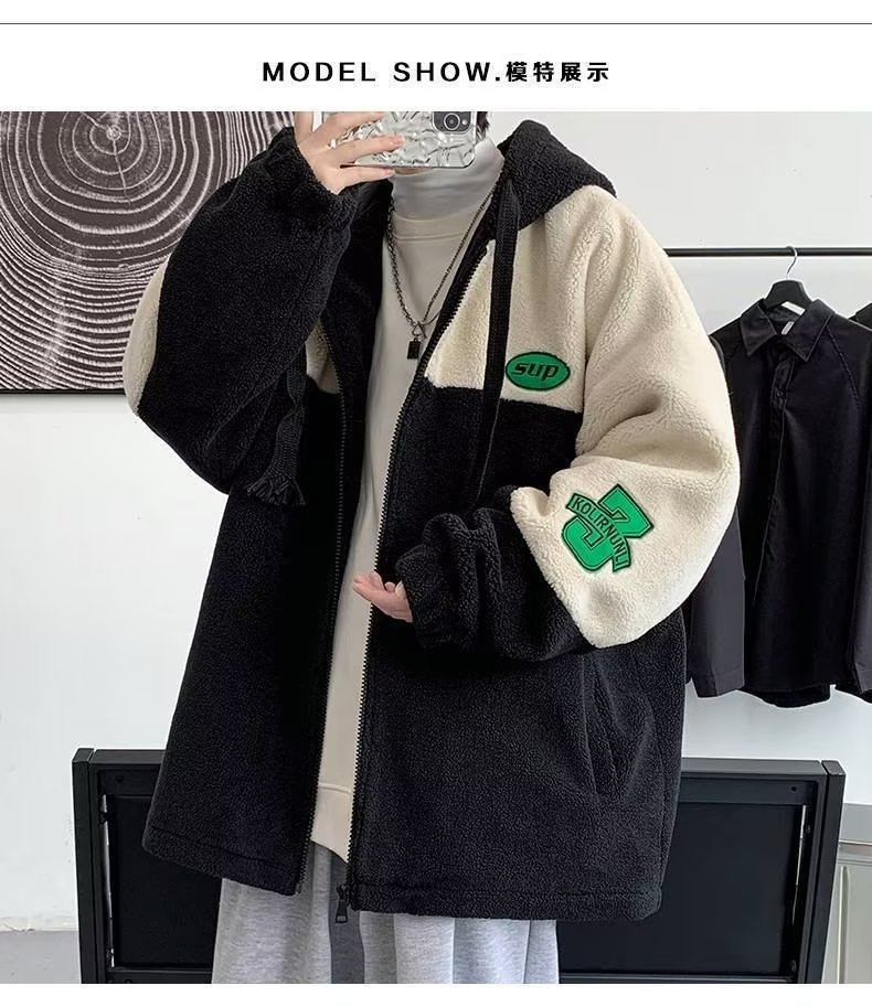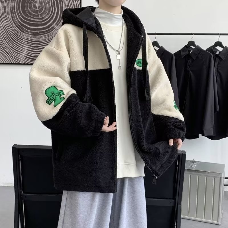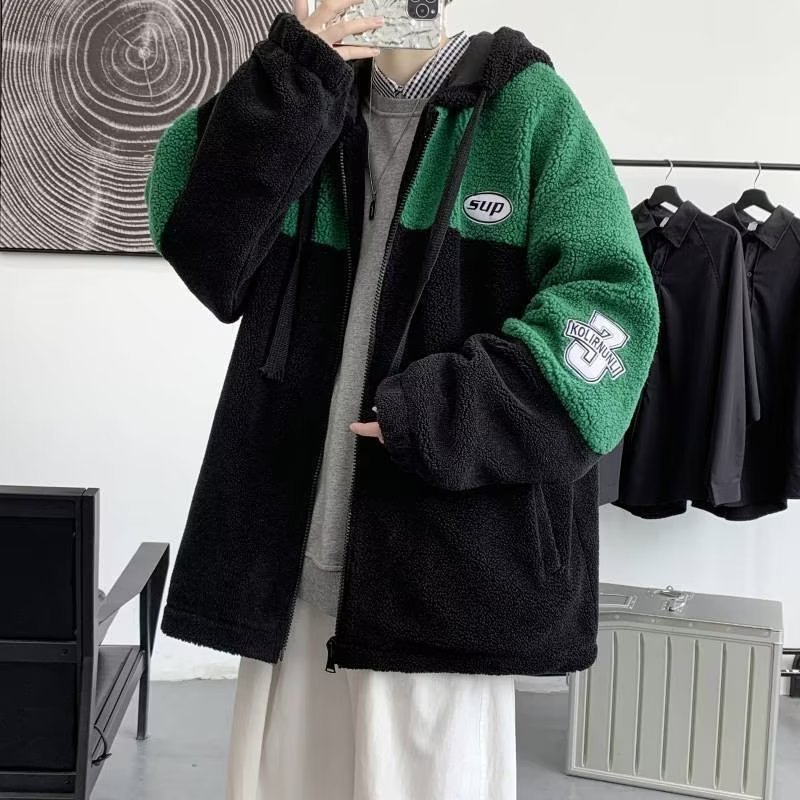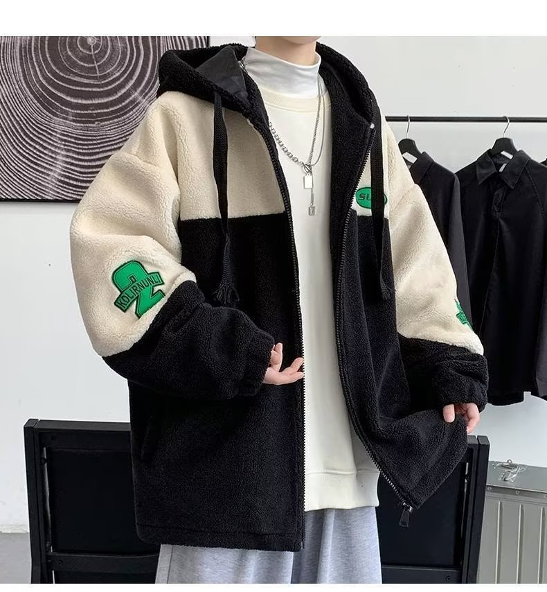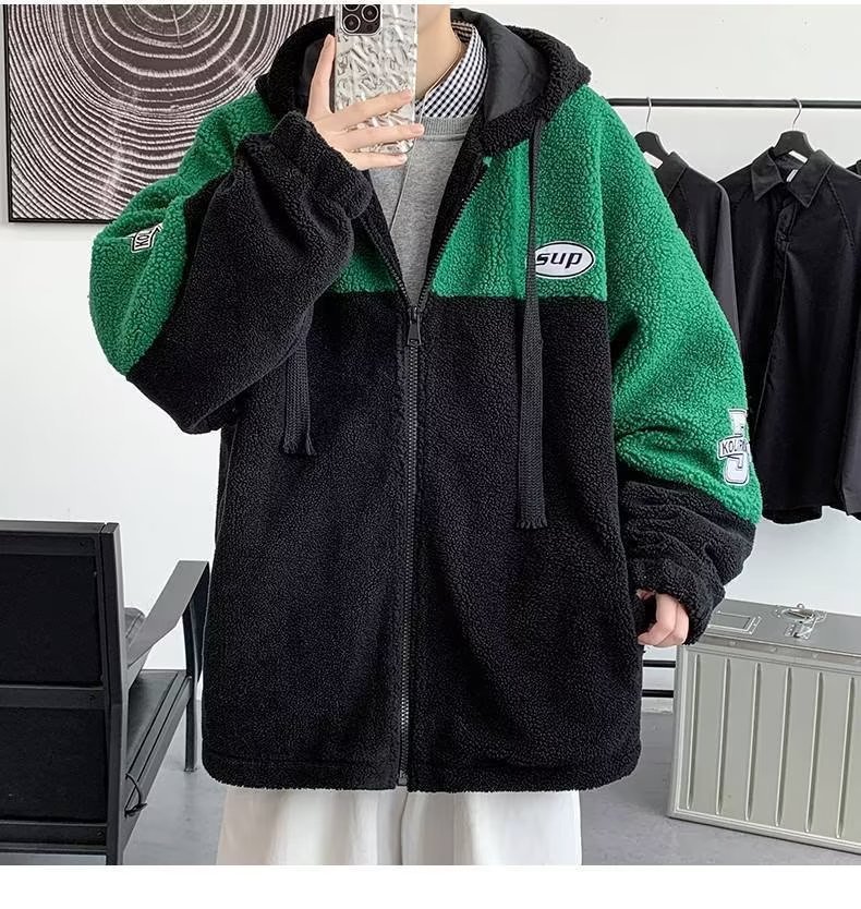 면 패딩 코트 남성용 기모 양가죽 코트 가을과 겨울 두꺼운 후드면 패딩 코트 청소년과 학생을위한 잘 생긴 겨울 코트