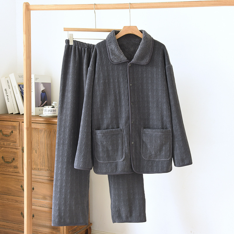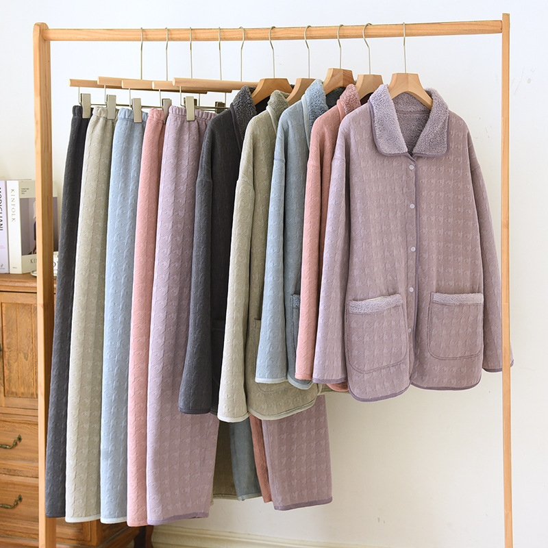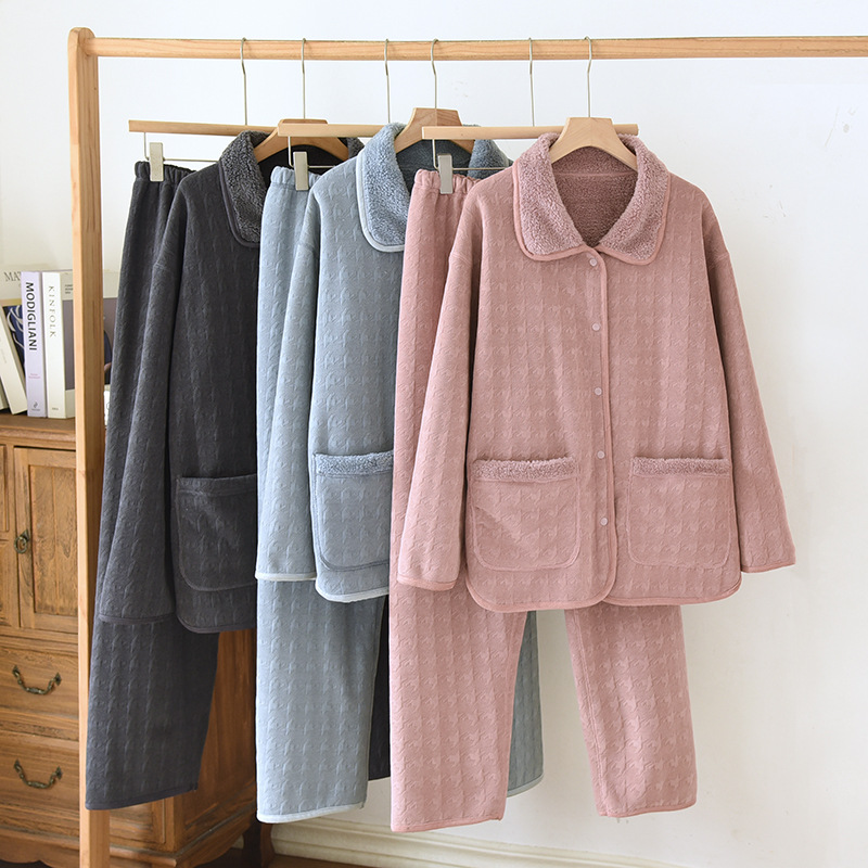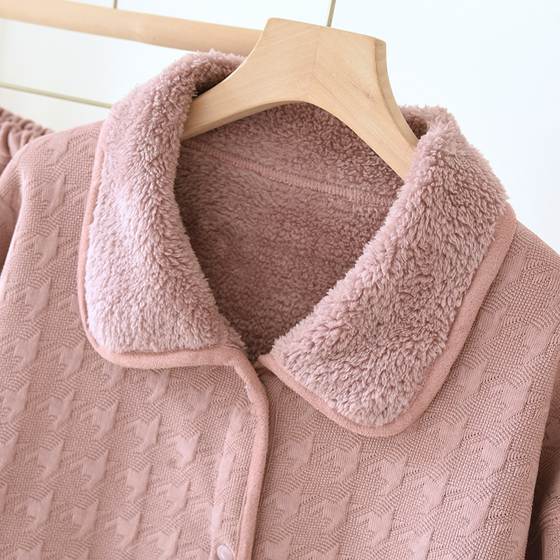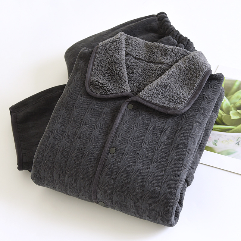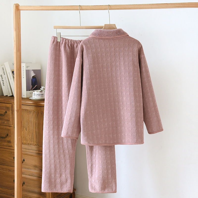 양면 Houndstooth 복합 벨벳 커플 겨울 기모 두꺼운 긴팔 세트 복장