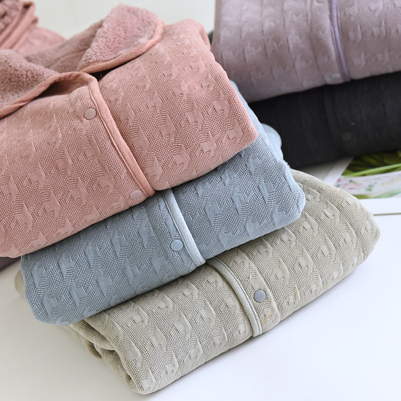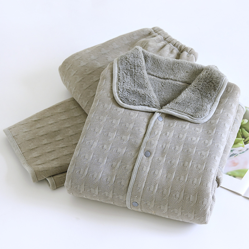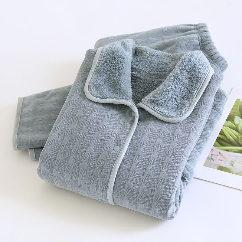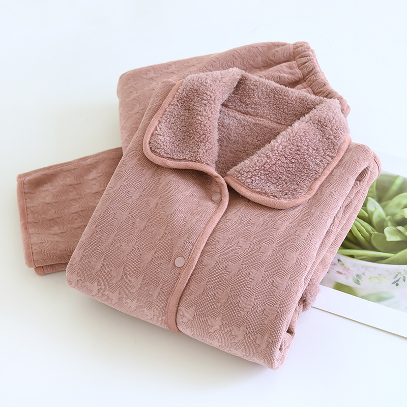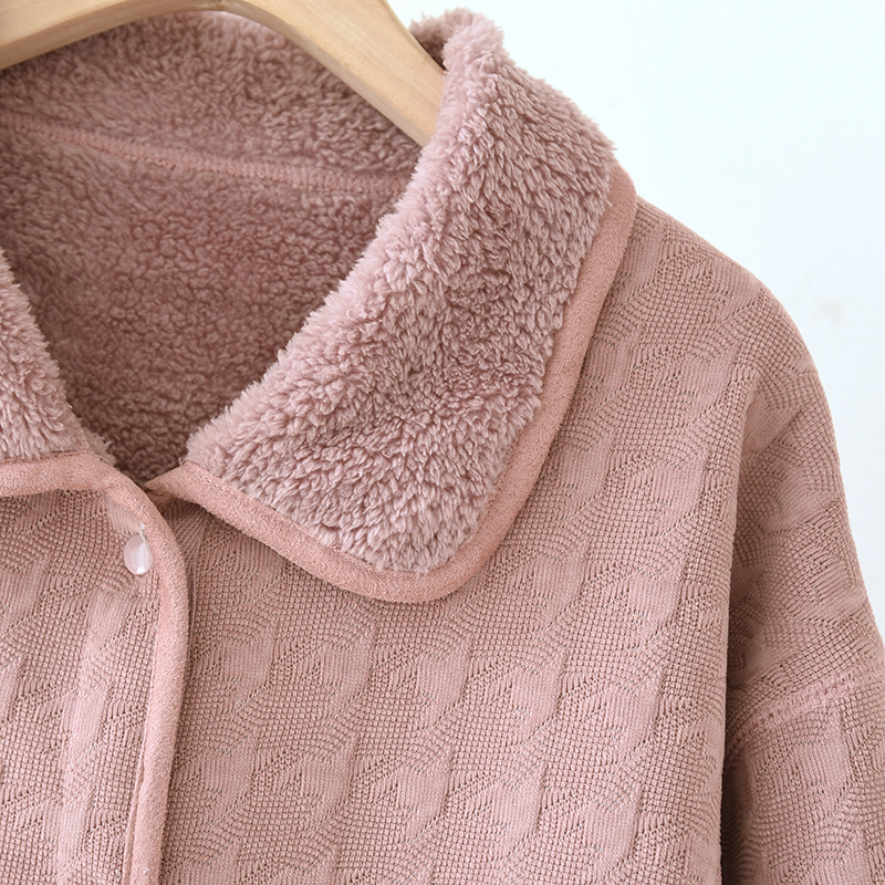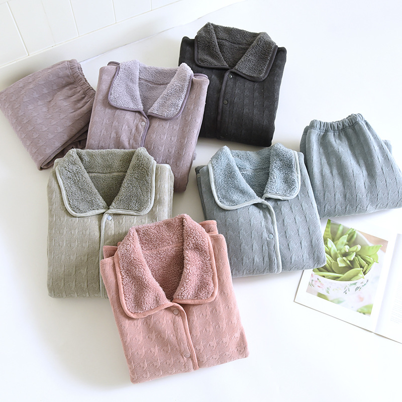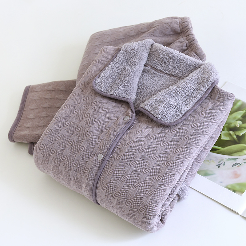 양면 Houndstooth 복합 벨벳 커플 겨울 기모 두꺼운 긴팔 세트 복장