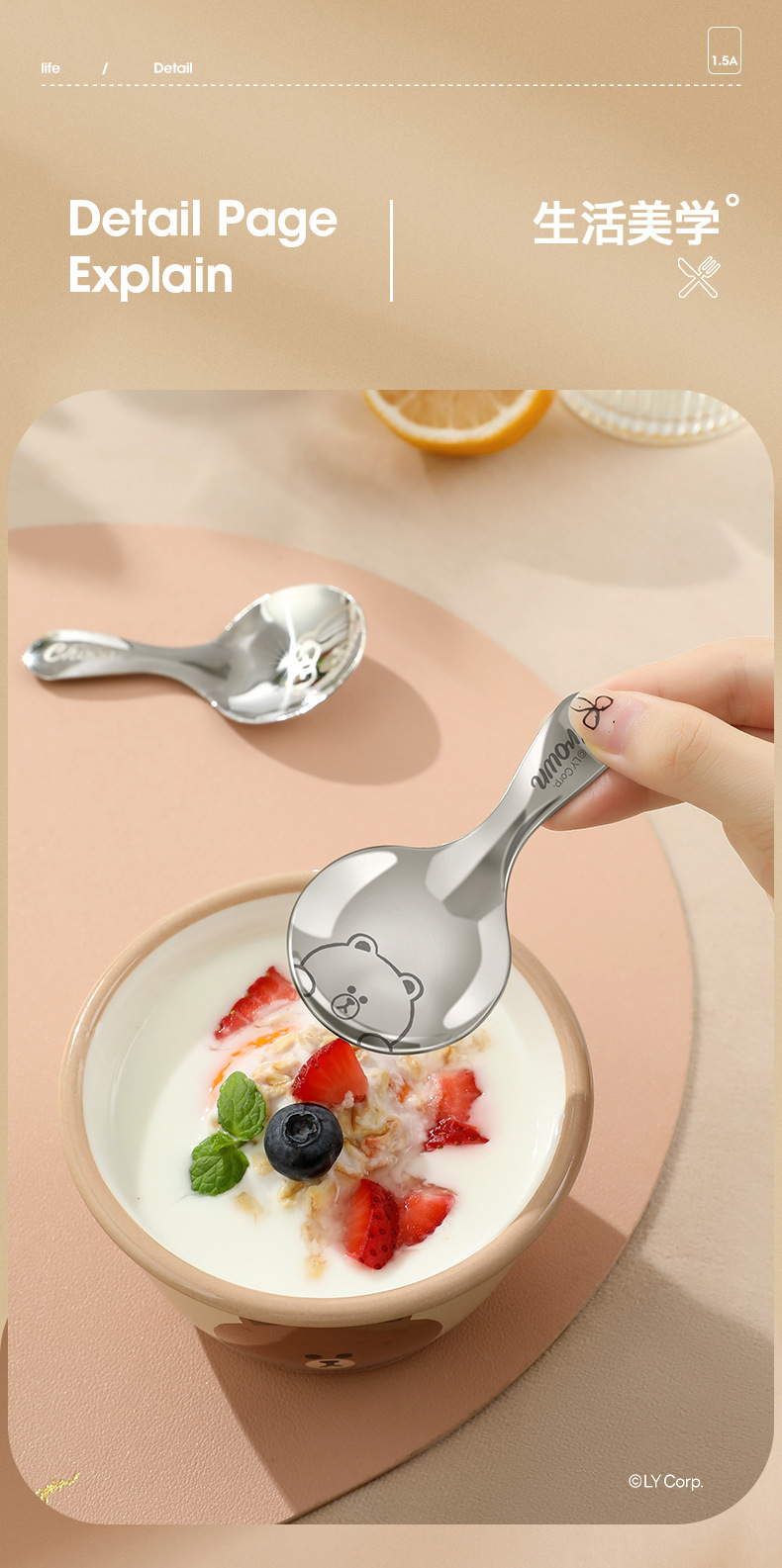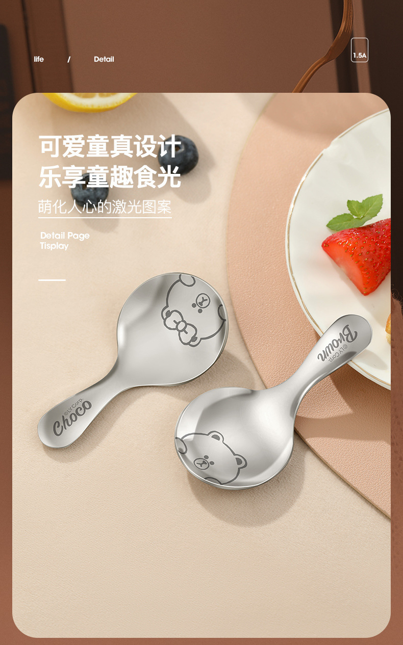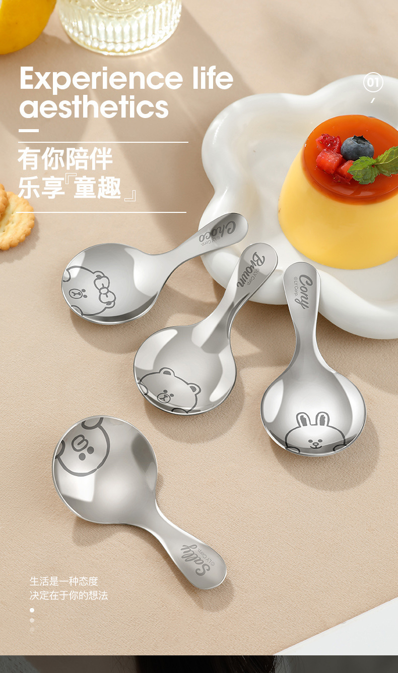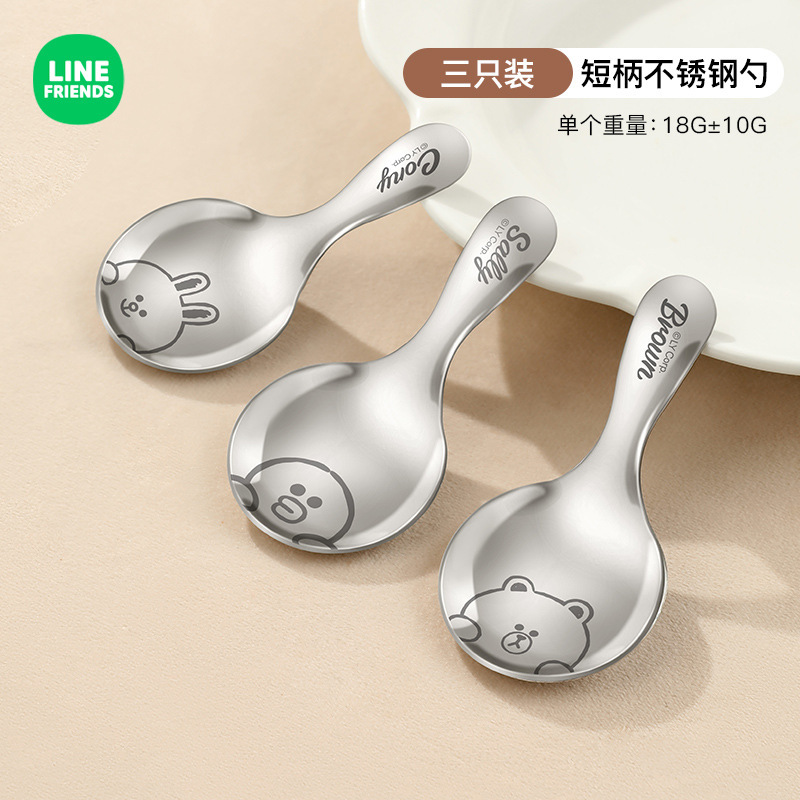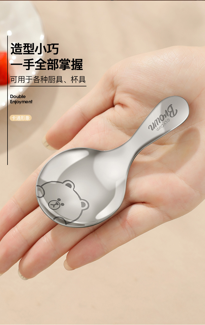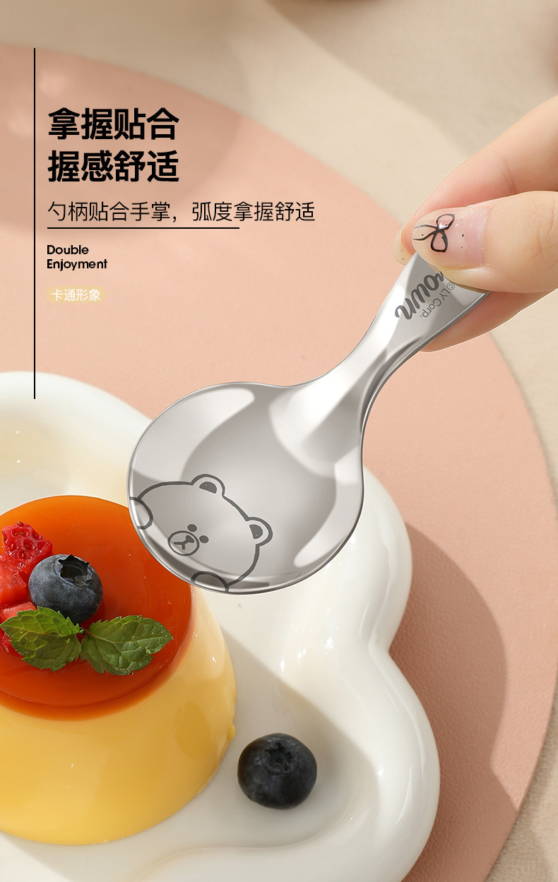 라인 과일 스테인레스 스틸 짧은 손잡이 둥근 숟가락 어린이 숟가락 휴대용 수프 스푼 찻잎 숟가락 우유 숟가락 디저트 스푼