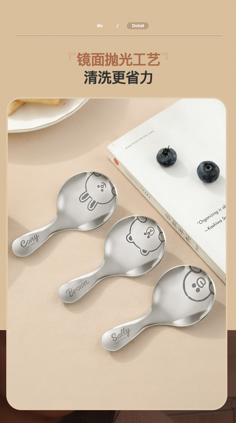 • [3종세트] 손잡이가 짧은 스테인리스 스푼 - 브라운코니 샐리