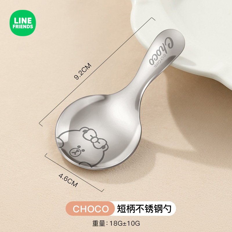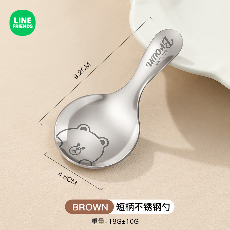 라인 과일 스테인레스 스틸 짧은 손잡이 둥근 숟가락 어린이 숟가락 휴대용 수프 스푼 찻잎 숟가락 우유 숟가락 디저트 스푼스토어 가기
