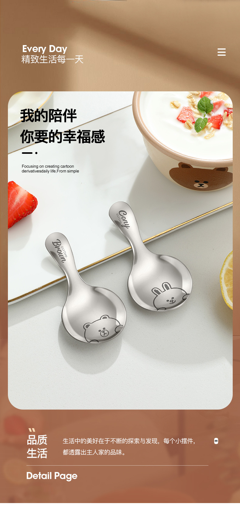 • 손잡이가 짧은 스테인리스 스푼-BROWN 스타일
