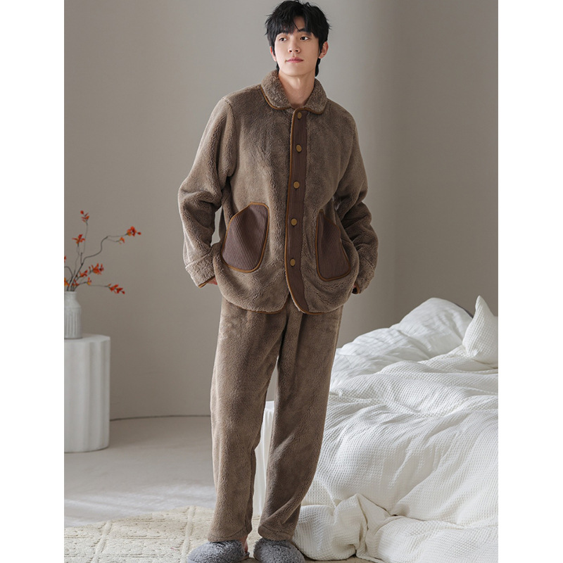 겨울 새로운 간단한 우아한 눈송이 벨벳 커플 파자마 달콤한 옷깃 카디건 두꺼운 따뜻한 집 옷