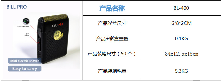 빌 BL-400 미니 면도기 새로운 미백 마무리 장치 전문 미용 도구 레트로 오일 헤드 모양 푸시스토어 가기