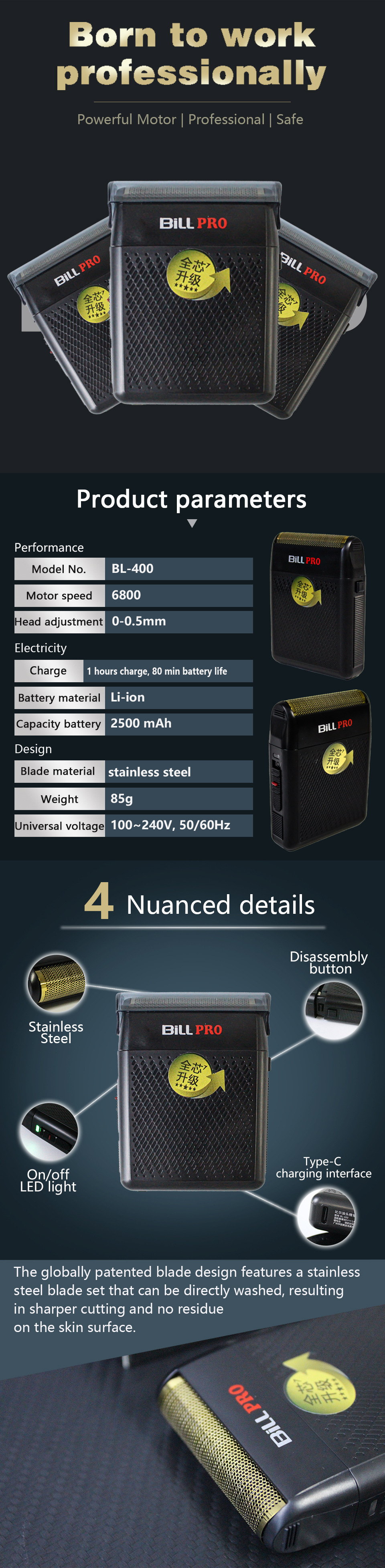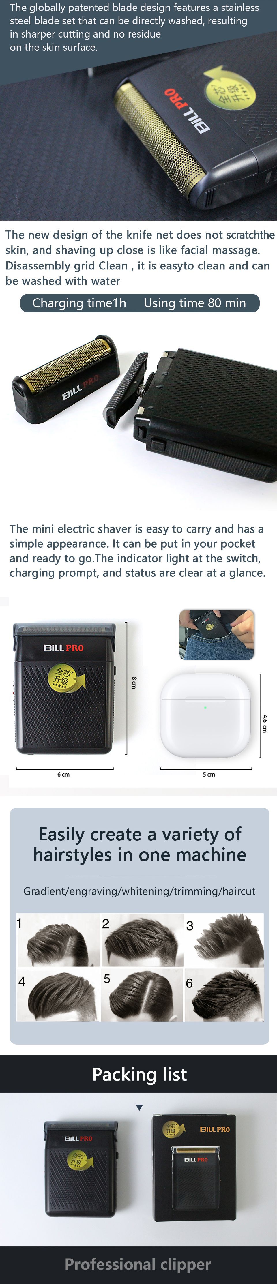 빌 BL-400 미니 면도기 새로운 미백 마무리 장치 전문 미용 도구 레트로 오일 헤드 모양 푸시