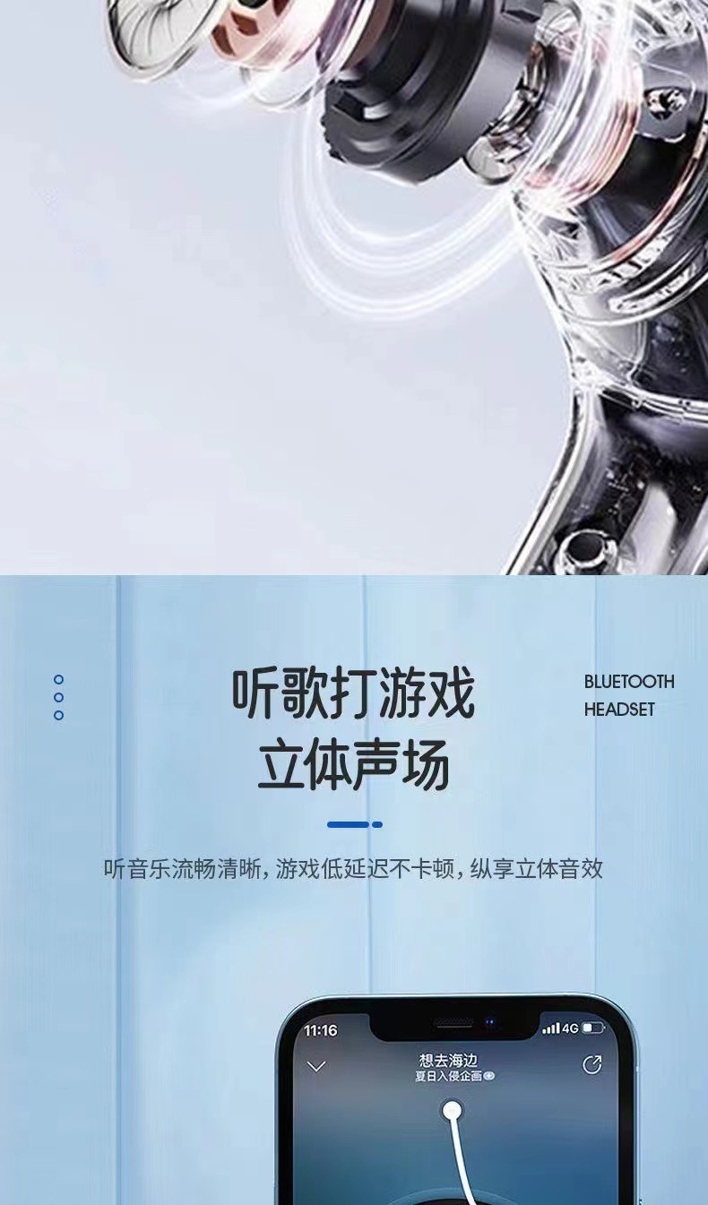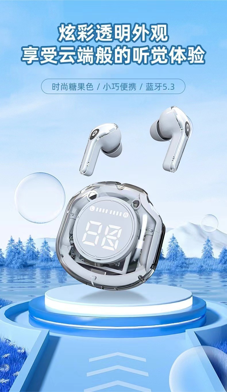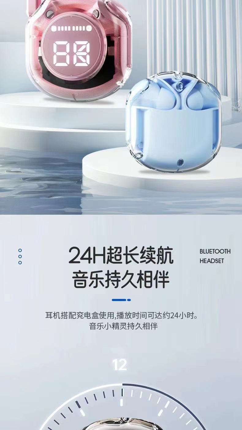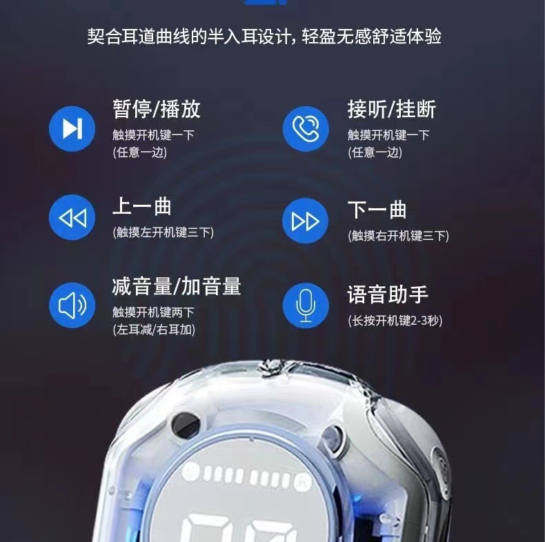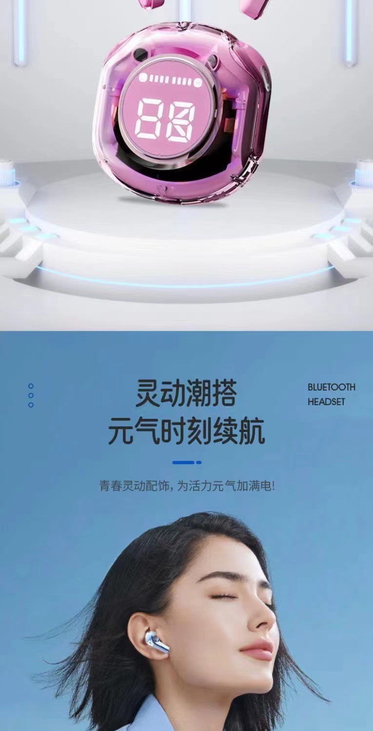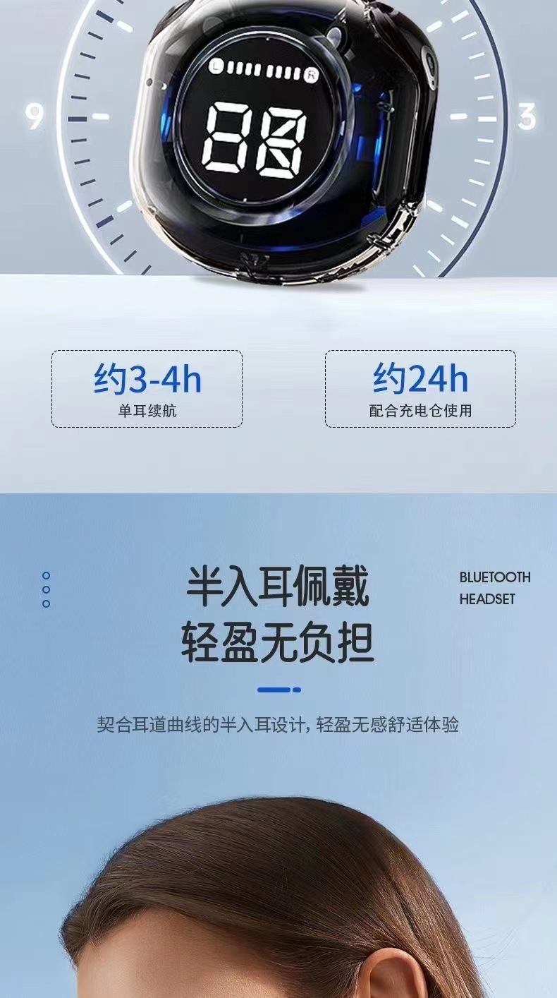 신규 사용자 전용 투명 디지털 디스플레이 블루투스 헤드셋, 이어폰형 디지털 디스플레이, 매우 긴 배터리 수명, 투명 2세대, 소음 감소, 범용스토어 가기