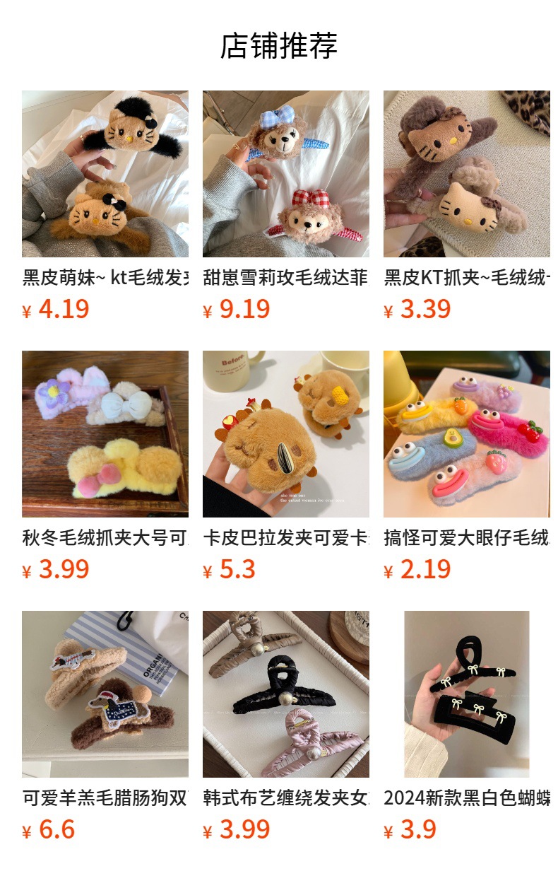 귀여운 고양이 봉제 잡아 클립 머리 디스크 헤어 클립 큰 상어 클립 머리 수량 멀티 만화 헤어핀 헤드웨어스토어 가기