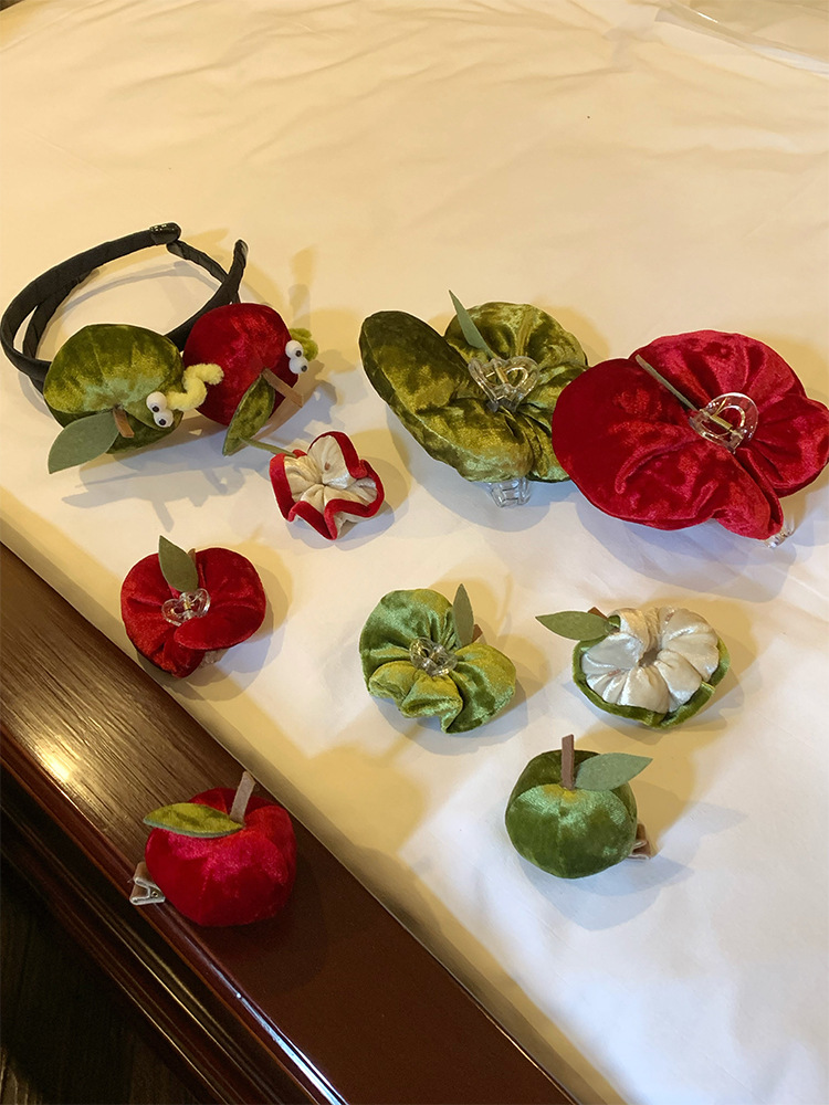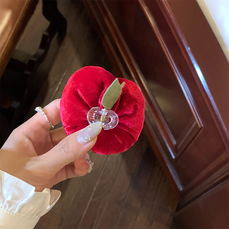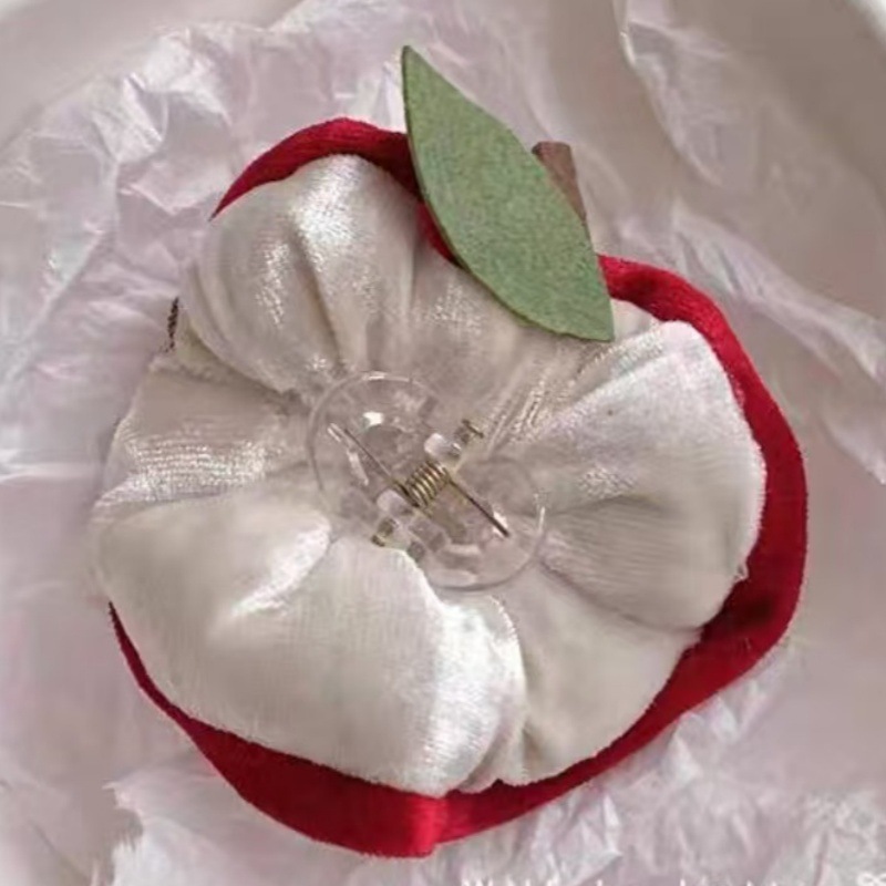 크리스마스 레드 애플 시리즈 안전한 과일 헤어핀 여성의 나른한 웃긴 헤어 밴드 플란넬 머리 잡아 헤어 액세서리