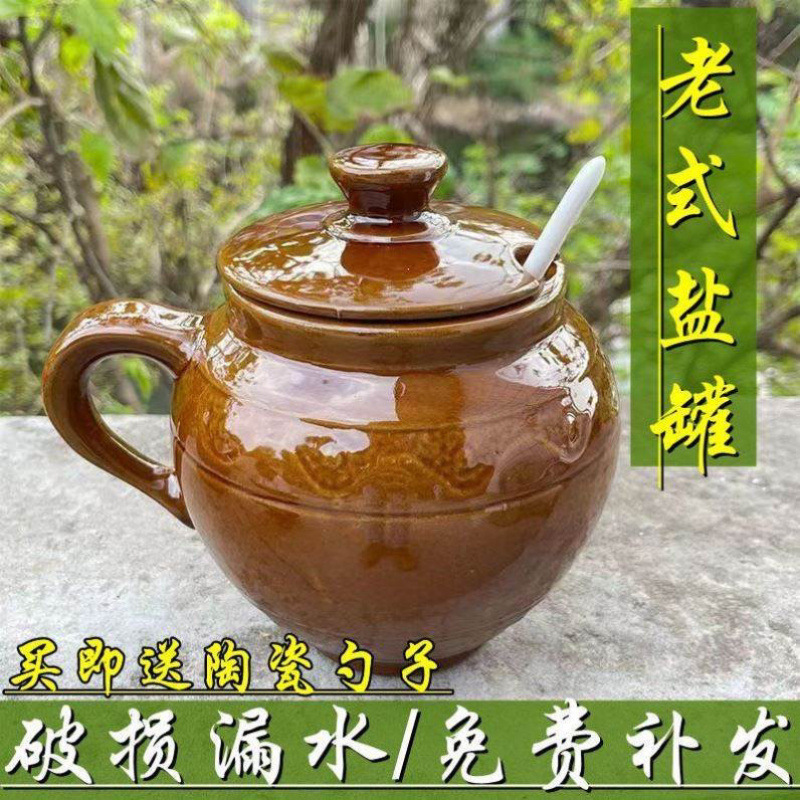 소금 냄비 가정용 구식 도자기 주방 소금 냄비 조미료 뚜껑 높은 온도 저항성 라드를 부어 후추 기름 냄비