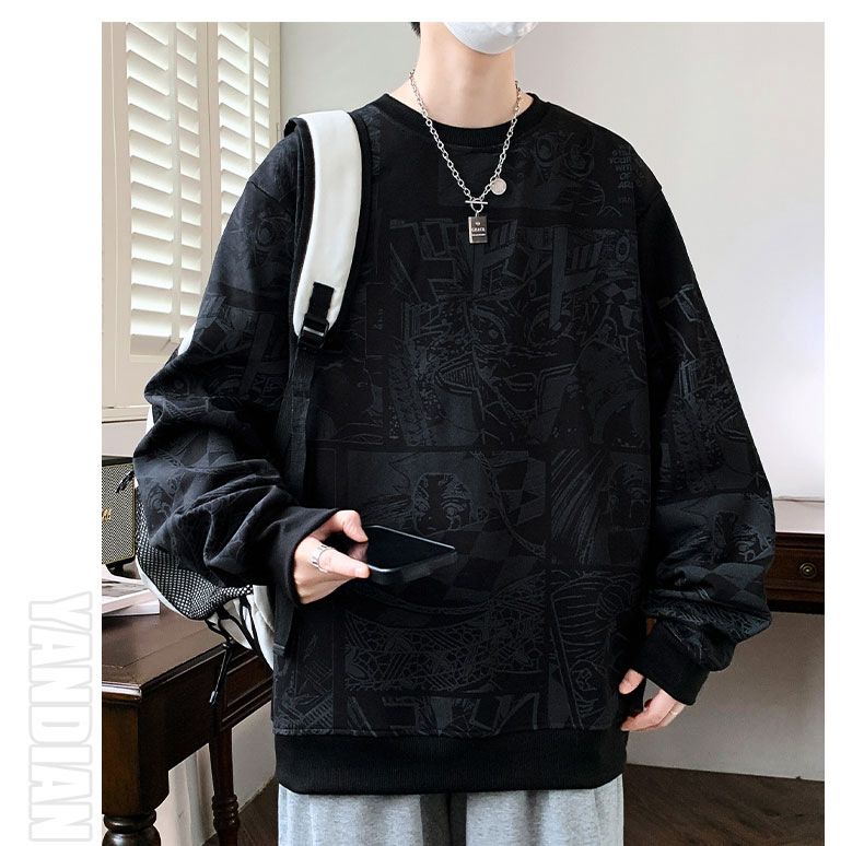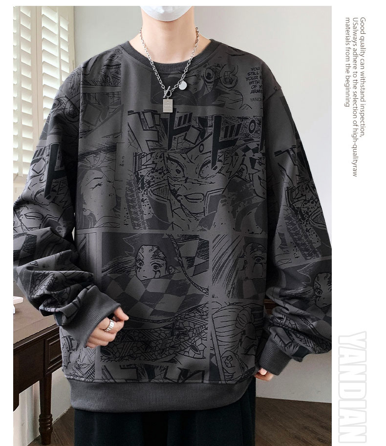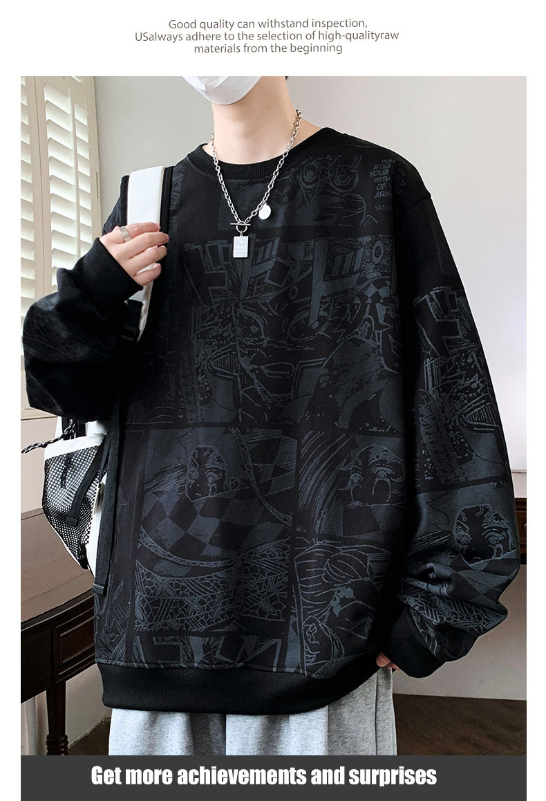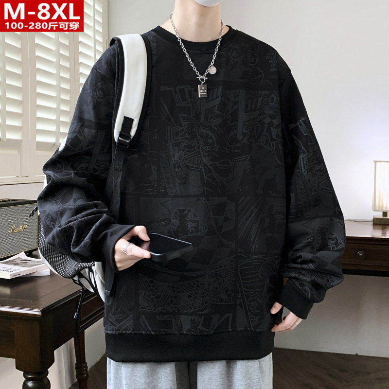 봄과 가을 트렌디 한 홍콩 스타일 남자의 인쇄 된 크루 넥 니트 스웨터 통통한 대형 플러스 사이즈 느슨한 스포츠 캐주얼 탑