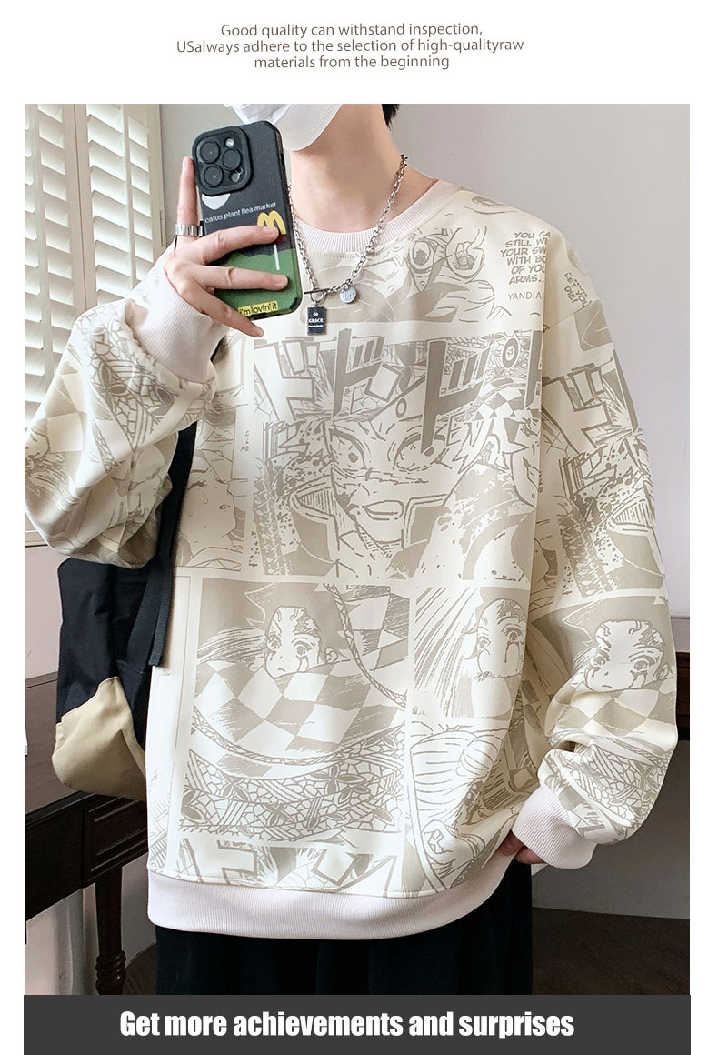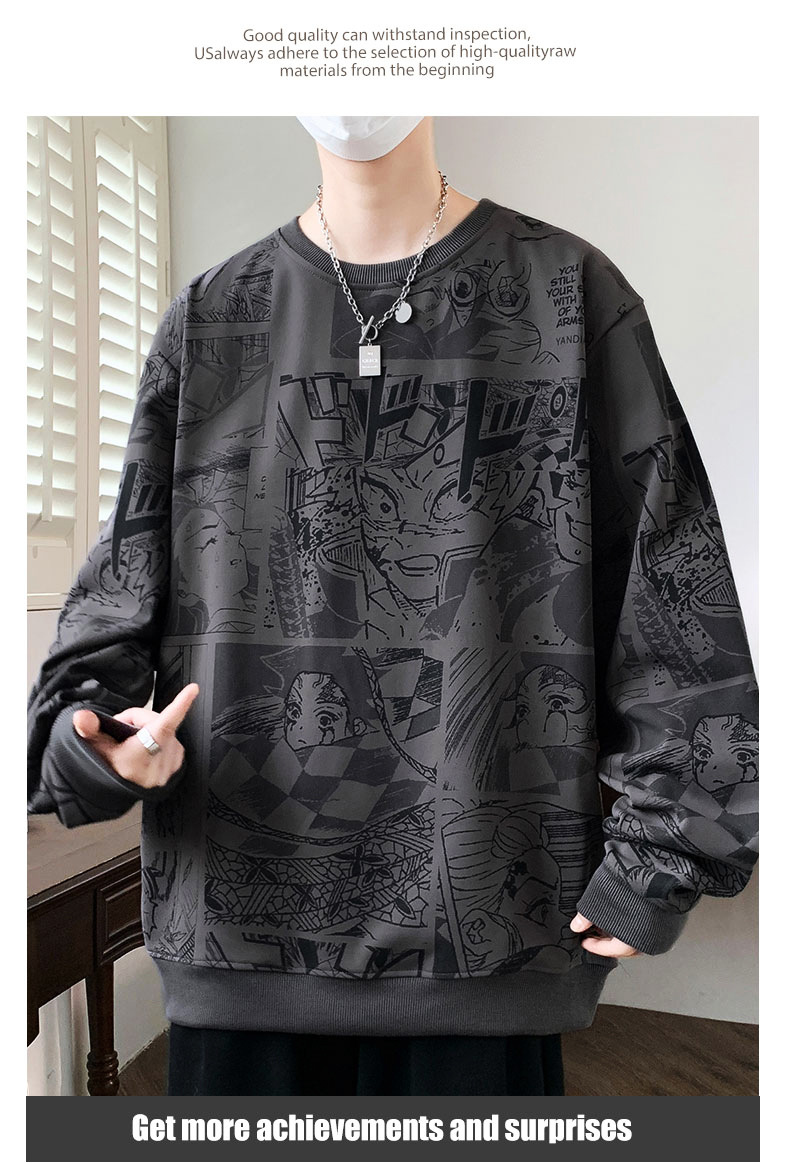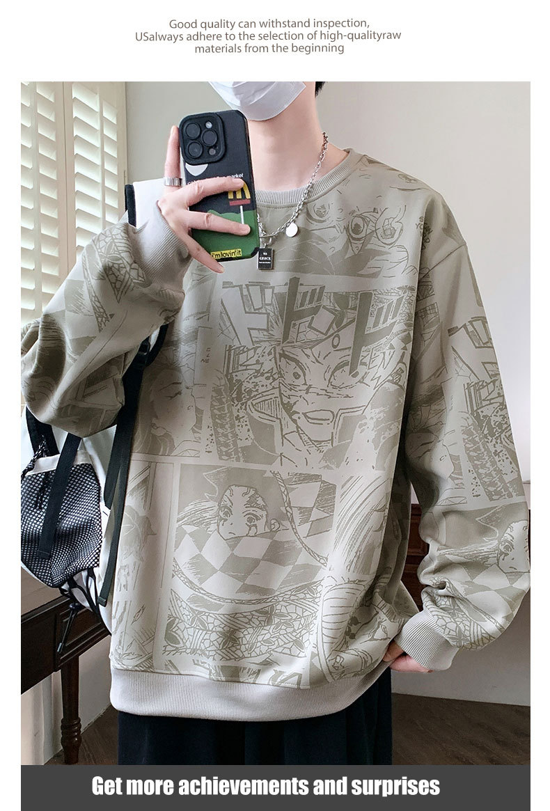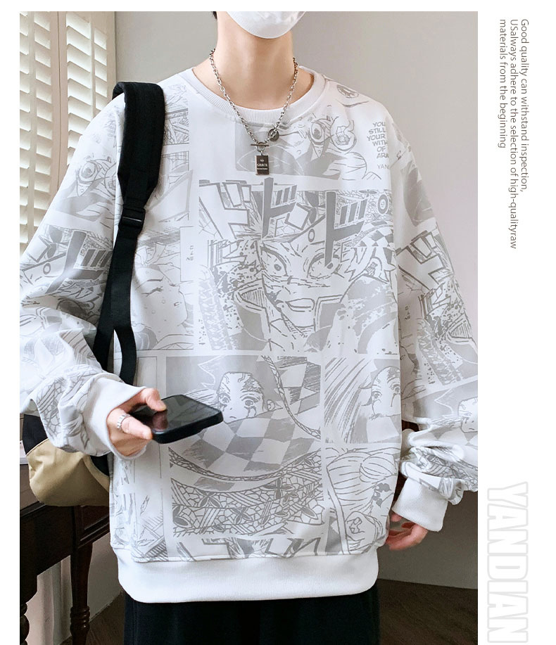 봄과 가을 트렌디 한 홍콩 스타일 남자의 인쇄 된 크루 넥 니트 스웨터 통통한 대형 플러스 사이즈 느슨한 스포츠 캐주얼 탑