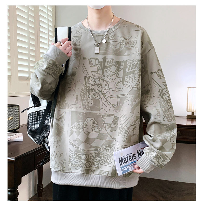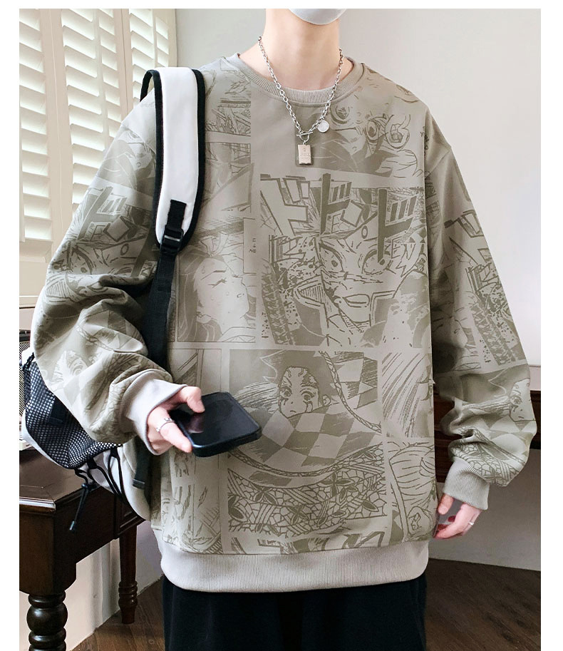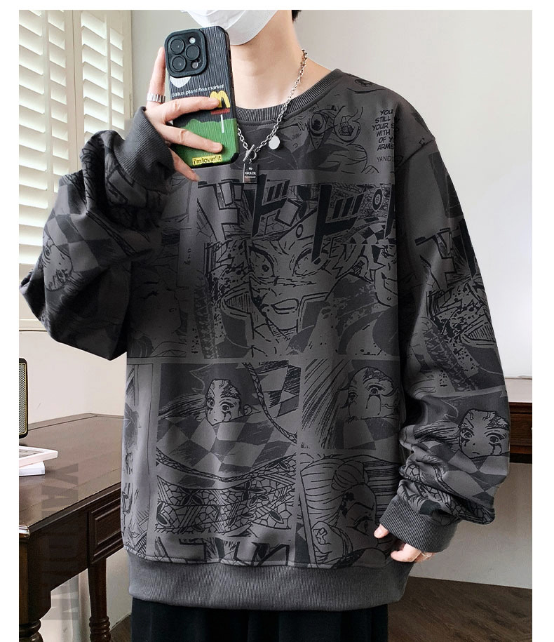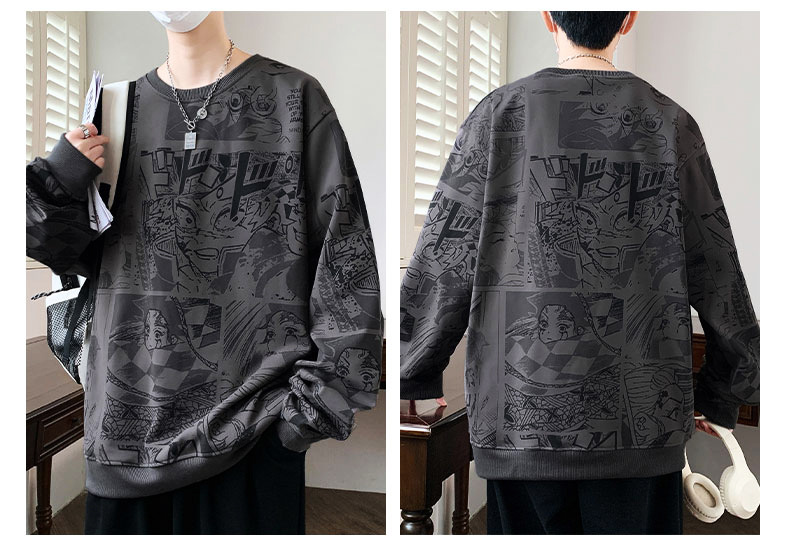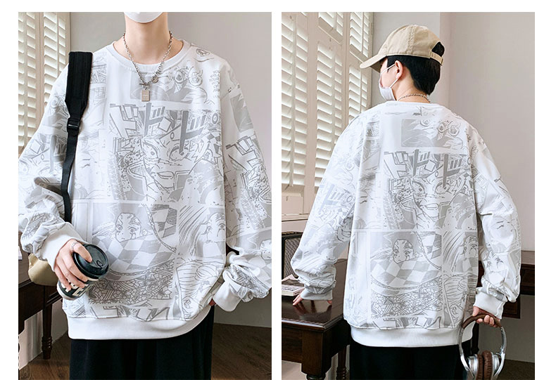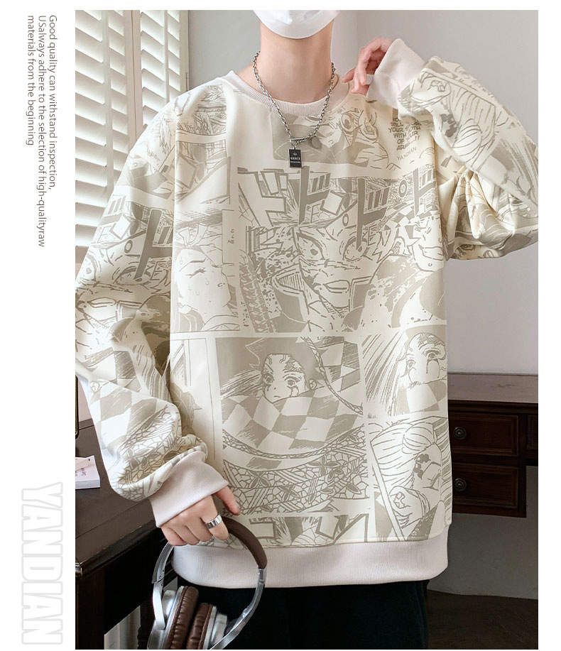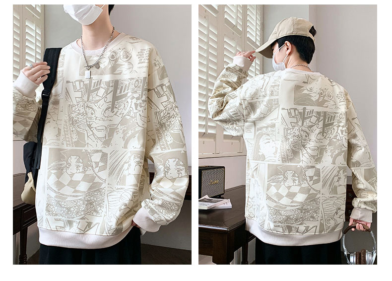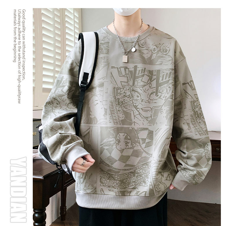 봄과 가을 트렌디 한 홍콩 스타일 남자의 인쇄 된 크루 넥 니트 스웨터 통통한 대형 플러스 사이즈 느슨한 스포츠 캐주얼 탑스토어 가기