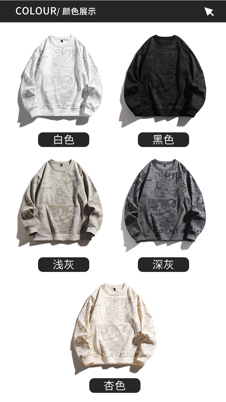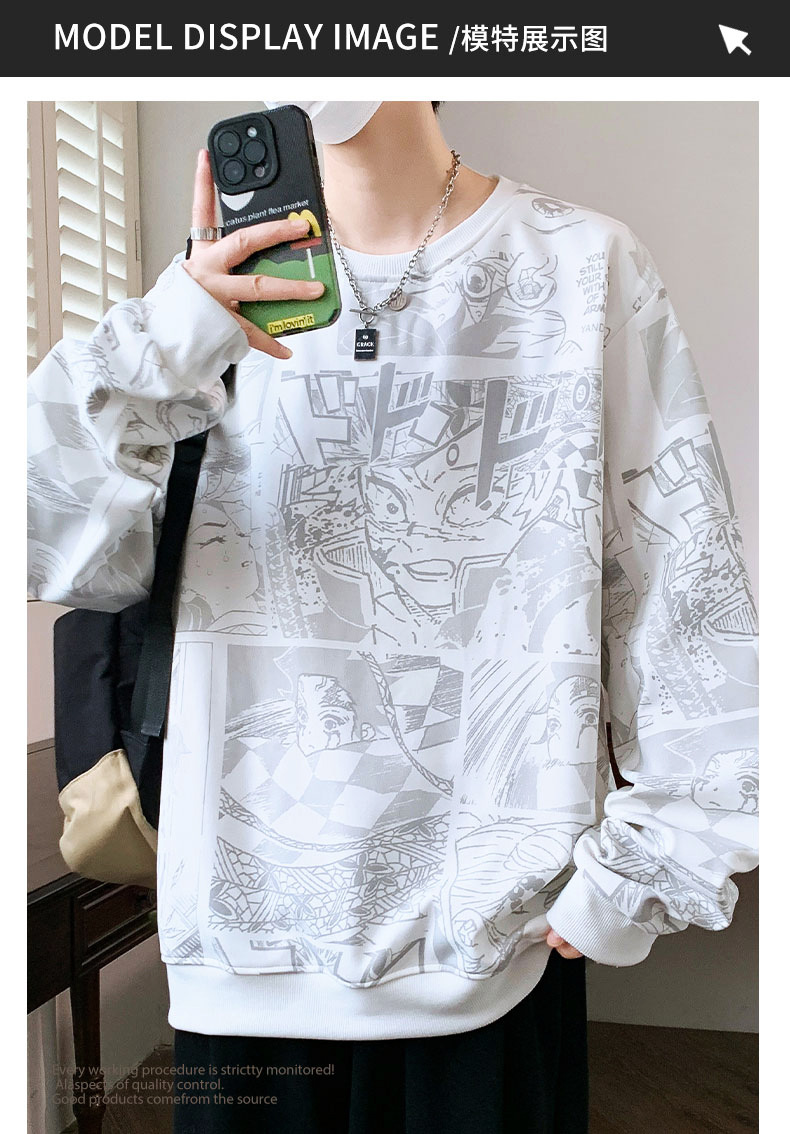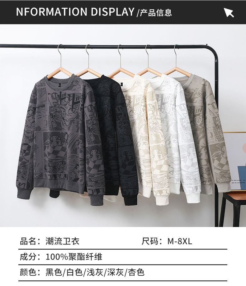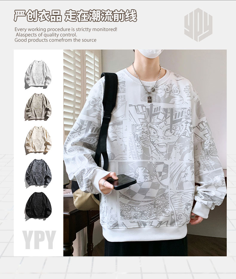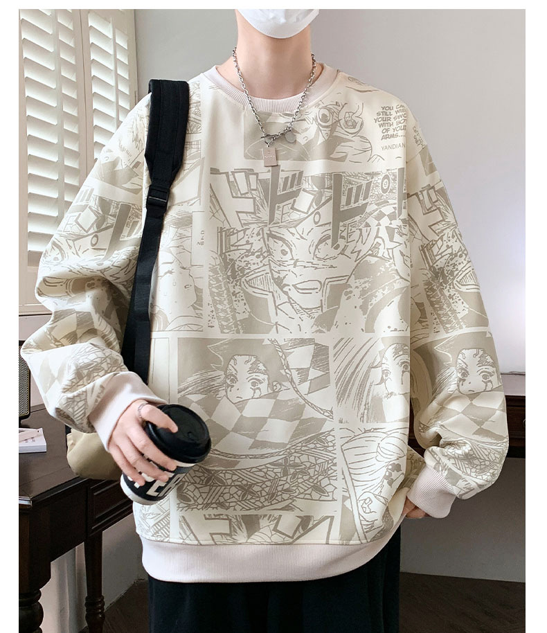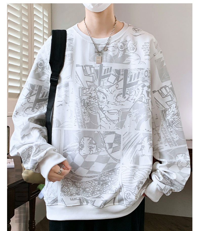 봄과 가을 트렌디 한 홍콩 스타일 남자의 인쇄 된 크루 넥 니트 스웨터 통통한 대형 플러스 사이즈 느슨한 스포츠 캐주얼 탑스토어 가기