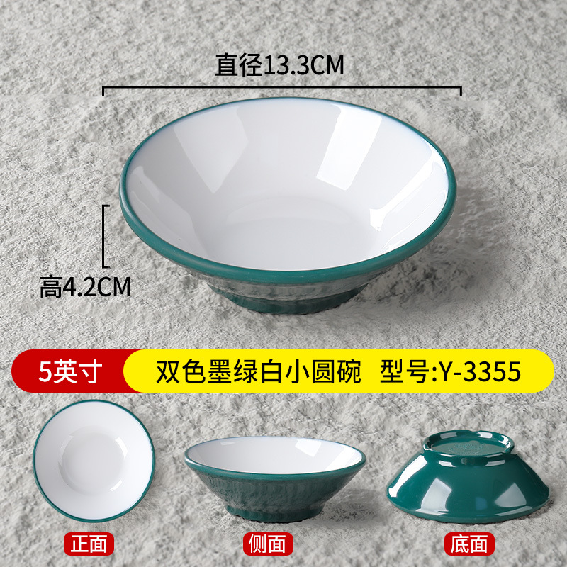 • 5inch 2색 짙은 녹색과 흰색 작은 원형 그릇 Y-3355