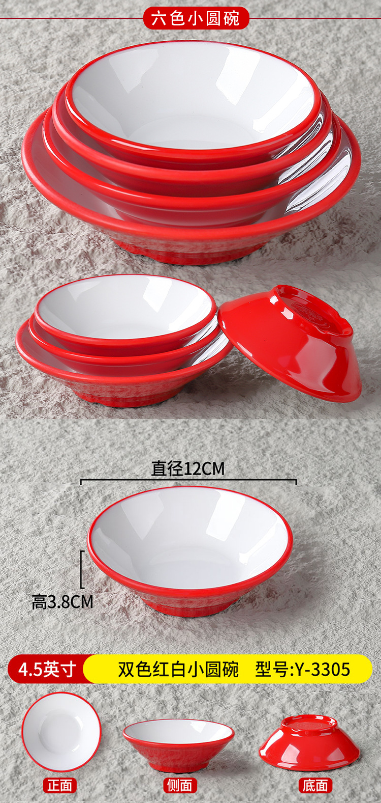 • 4.5inch 빨간색과 흰색의 2색 작은 원형 그릇 Y-3305