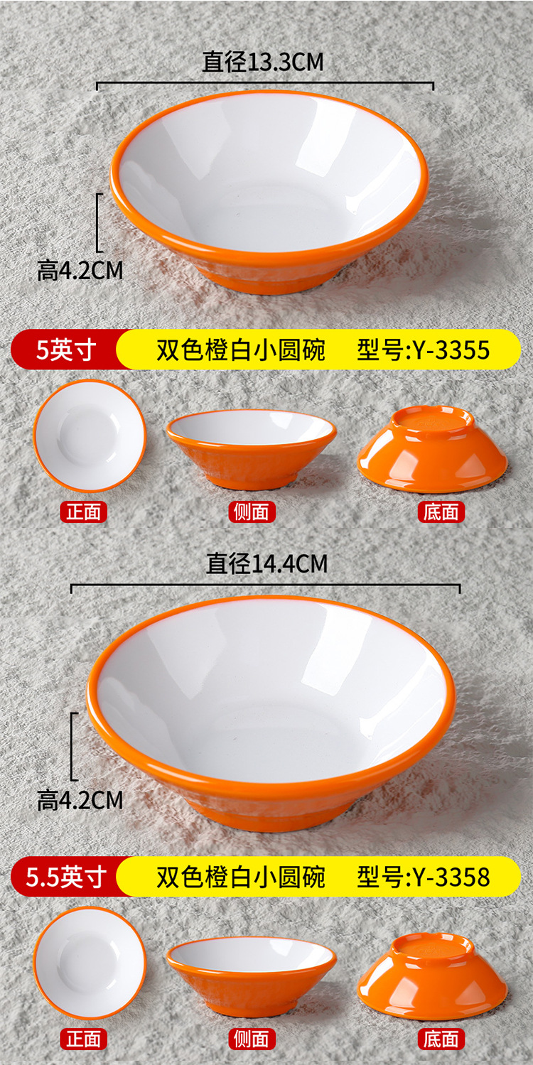 • 5.5inch 주황색과 흰색의 2색 작은 원형 그릇 Y-3358