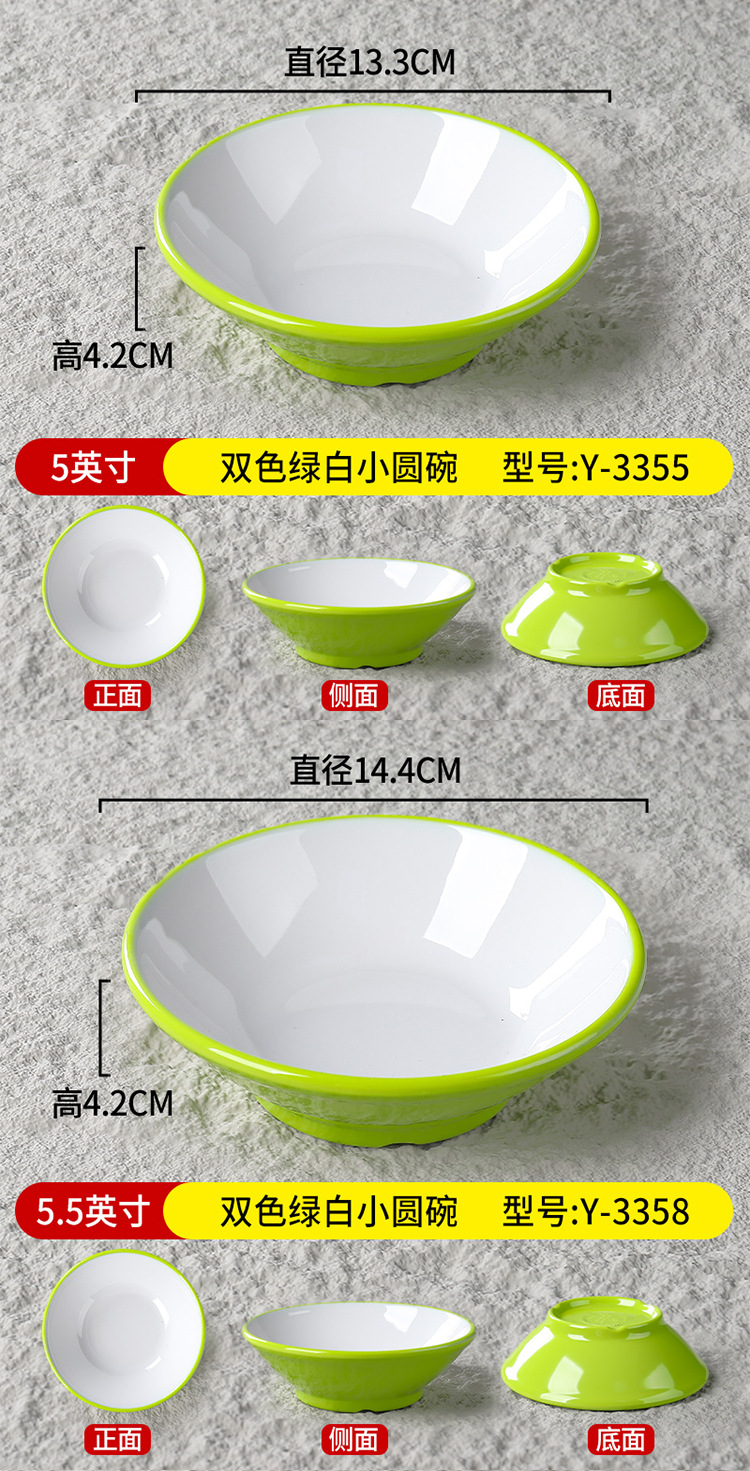 • 5.5inch 2색 녹색 및 흰색 작은 원형 그릇 Y-3358