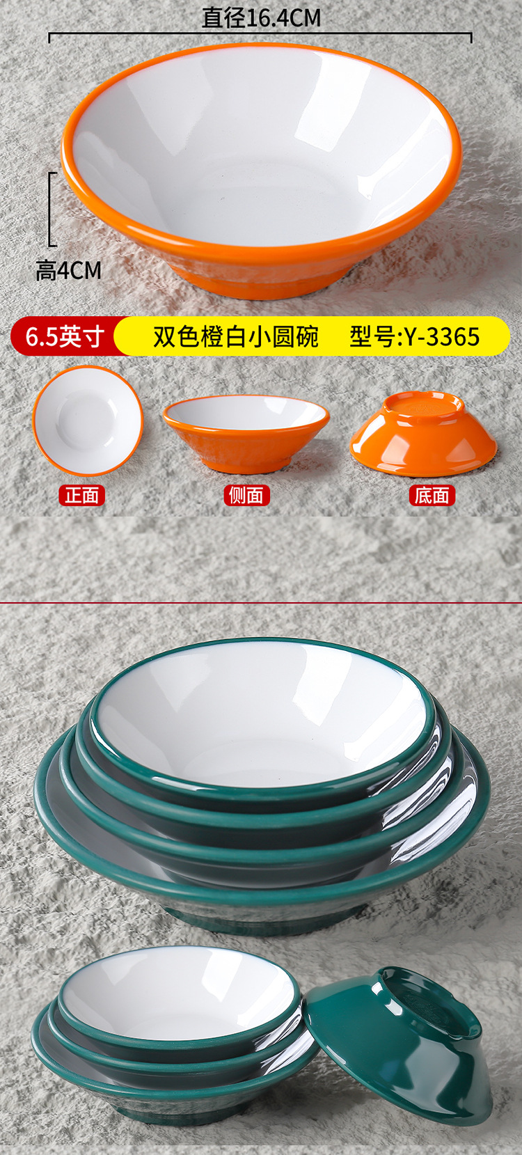 • 6.5inch 주황색과 흰색의 2색 작은 원형 그릇 Y-3365