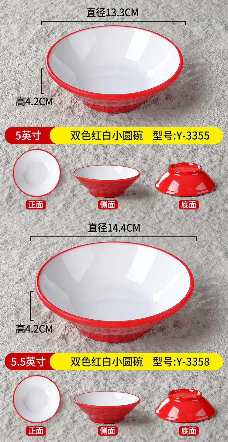 • 5inch 빨간색과 흰색의 2색 작은 원형 그릇 Y-3355