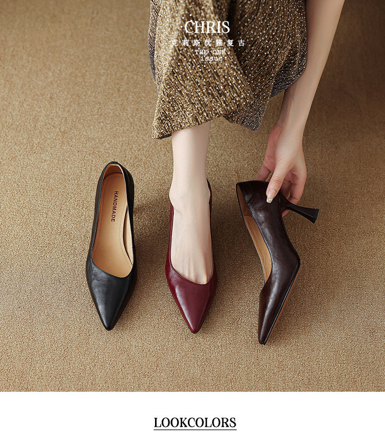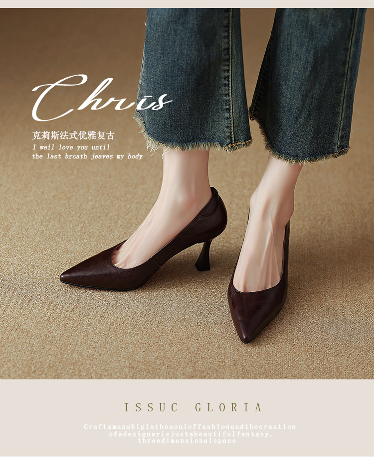 33-41 대형 사이즈 프렌치 스타일 뾰족코 얕은 구두 봄 가을 신상 여성화 심플한 출퇴근용 하이힐 크로스보더 신발스토어 가기